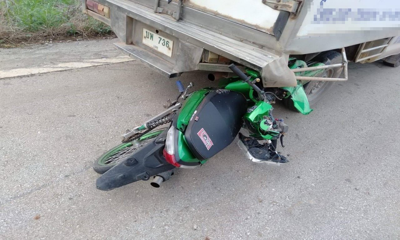 ห่างออกไปพบรถ จยยฮอนด้าเวฟ สีเขียว ไม่ติดหมายเลขทะเบียน ชนท้ายด้านขวารถกระบะบรรทุกน้ำแข็ง โตโยต้าวีโก้ สีบร์อน ทะเบียน บพ 736 เลย มีนายพิทักษ์ ศรีทาดี อายุ 33 ปี อยู่ อ.ปากชม จ.เลย ยืนรอพบ จนท.ตร. ส่วนสาเหตุอยู่ระหว่างสอบสวนและสอบปากคำคนขับรถกระบะ