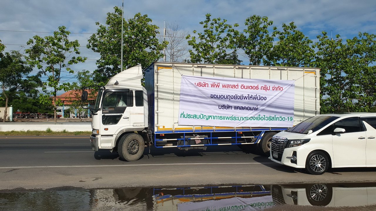 นางณิชากร ธัญญชีพ (คุณนิกี้) กรรมการผู้จัดการบริษัท พีพี พลาสต์ อินเตอร์ กรุ๊ป จำกัด กล่าวว่า ภายหลังจากทราบข่าวการแพร่ระบาดของเชื้อไวรัสโควิด-19 ภายในโรงงานอุตสาหกรรมแห่งนี้ มีผู้ติดเชื้อจำนวนมากถึง 2,111 คน และมีการตั้งโรงพยาบาลสนาม และสถานที่กักตัวอยู่ภายในโรงงาน ด้วยความห่วงใยพี่น้องชาวจังหวัดเพชรบุรี และแรงงานต่างด้าว ที่มีจำนวนมากถึงกว่า 14,000 คน จึงร่วมกับสายบุญวังพญาปู่มุจลินท์นาคาธิบดี นาคราช และผู้ใจบุญนำสิ่งของบรรจุถุงยังชีพจำนวน 2 ตู้คอนเทนเนอร์มามอบให้เพื่อเป็นขวัญและกำลังใจในการต่อสู้ภัยโควิด-19 ในระลอกนี้