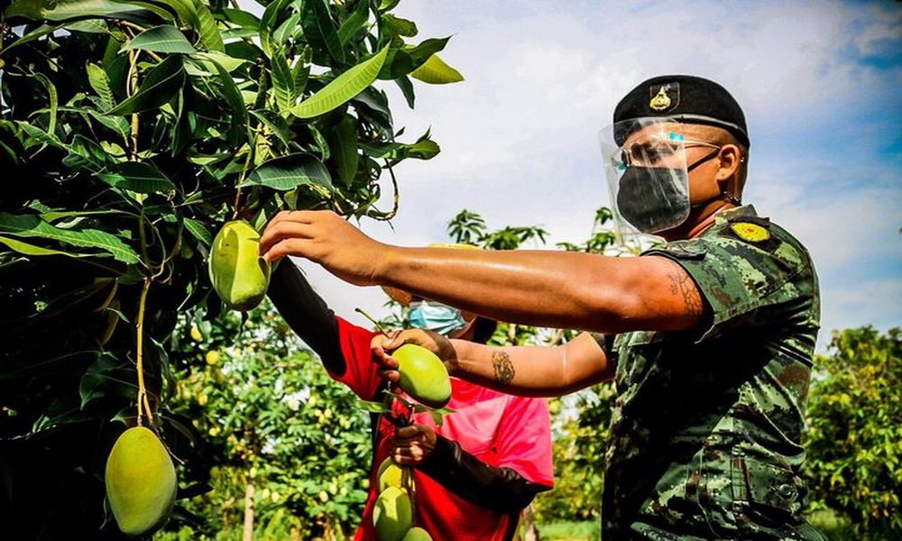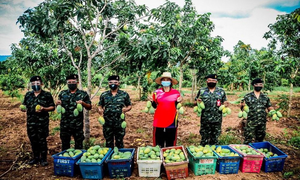 วันที่ 26 พ.ค.64 กรมทหารราบที่ 13 โดย กองพันทหารราบที่ 2 จัดกำลังพลออกปฏิบัติภารกิจตามโครงการ หน่วยทหารจ่ายตลาด ช่วยเหลือเกษตรกรฟื้นฟูเศรษฐกิจ จัดกำลังพลเข้าซื้อมะม่วง ที่สวนของนางสุหัตตา ภูตาเพิด เกษตรกรผู้ทำสวนมะม่วง บ้านกุดหมากไฟ ต.กุดหมากไฟ อ.หนองวัวซอ จ.อุดรธานี เพื่อนำมาเป็นอาหารเสริม ให้กับทหารกองประจำการของหน่วยได้รับประทาน และยังเป็นการช่วยเหลือเกษตรกรให้มีรายได้เพิ่ม ภายใต้สถานการณ์ที่มีการแพร่ระบาดของโรคไวรัสโควิด-19 ทำให้ไม่สามารถนำผลผลิตออกจำหน่ายได้ตามปกติ จากการปฏิบัติทำให้ประชาชนมีความพึงพอใจที่หน่วยทหารได้เข้ามาให้ความช่วยเหลือในครั้งนี้