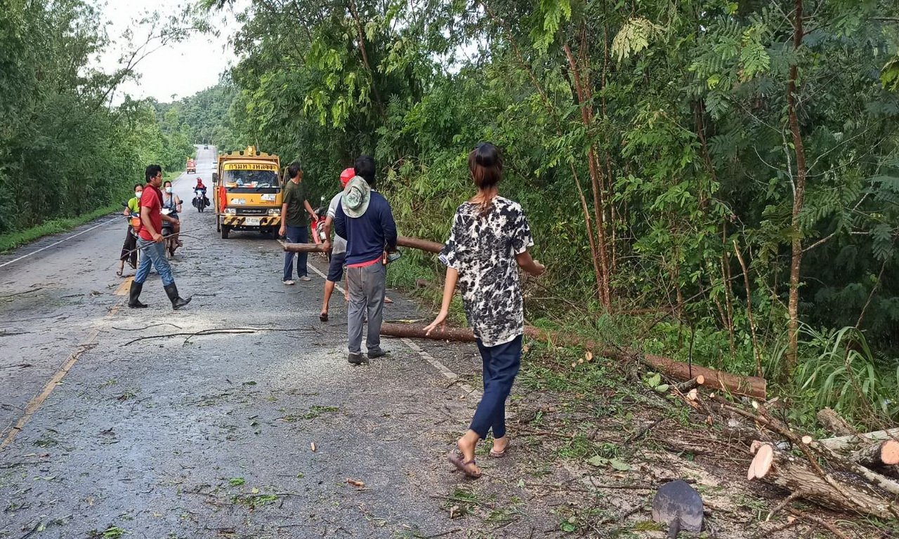 พายุร้อนพัดกระหน่ำอำเภอภูกระดึง ต้นไม้หักขวางถนน บ้านเรือนประชาชนหลังคาเปิงหาย