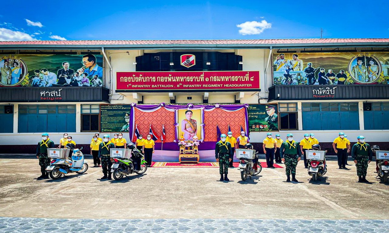 วันที่ 3 พ.ค.64 กองพันทหารราบที่ 1 กรมทหารราบที่ 8 ค่ายศรีสองรัก อ.เมือง จ.เลย จัดกิจกรรมจิตอาสา บำเพ็ญสาธารณประโยชน์ “มีแล้วแบ่งปั่น” เพื่อถวายเป็นพระราชกุศล เนื่องในโอกาสวันเฉลิมพระชนมพรรษา สมเด็จพระนางเจ้าฯ พระบรมราชินี 3 มิถุนายน 2564 โดยหน่วยได้นำรถครัวสนาม มาประกอบอาหารเพื่อทำเป็นข้าวกล่อง พร้อมดำเนินกิจกรรม Army Delivery ส่งข้าวกล่อง น้ำดื่ม และหน้ากากอนามัย ถึงมือพี่น้องประชาชน พื้นที่บ้านท่าบุ่ง หมู่ 5 ต.ศรีสองรัก อ.เมือง จ.เลย เพื่อบรรเทาความเดือดร้อนให้กับพี่น้องประชาชน ภายใต้สถานการณ์ที่มีการแพร่ระบาดของโรคCOVID-19 ในปัจจุบัน