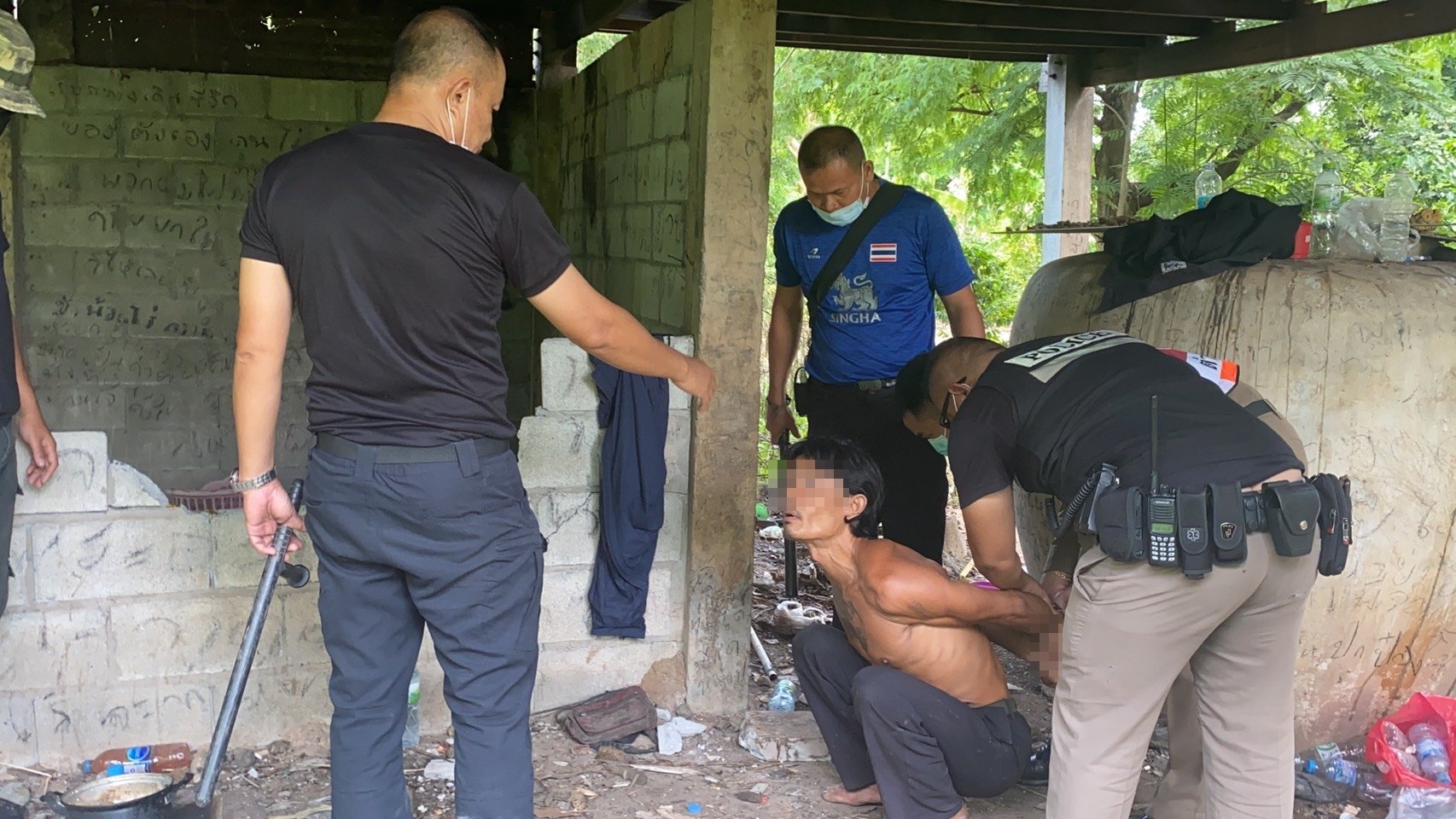 เมื่อเวลา 15.30 น. วันที่ 5 ก.ค.64 พ.ต.ท.สุทธินันท์ รอดคำวงศ์ สวป.สภ.หนองหญ้าปล้อง จ.เลย ได้รับแจ้งมีคนคลุ้มคลั่งไล่ทางผู้ใหญ่บ้านและทำร้ายข้าวของ ภายในบ้านเลขที่ 218 บ้านวังไห หมู่ 4 ต.หนองหญ้าปล้อง อ.วังสะพุง เมื่อรับแจ้ง นำกำลังพร้อมด้วยอุปกรณ์เหล็กง้ามเดินทางไปที่เกิดเหตุ พบนายชายแดน สุทธิอาจ ผู้ใหญ่บ้าน หมู่ 4 ถูกนายมนเทียน อายุ 40 ปี อยู่ ต.หนองหญ้าปล้อง อ.วังสะพุง จ.เลย ใช้อาวุธมีดทำครัวยาว 6 นิ้ว ฟันเข้าที่บริเวณแก้มซ้าย 1 แผล และทำร้ายทรัพย์สินในบ้านจนเสียหาย หลังก่อเหตุหลบหนีไปที่บ้านร้าง ห่างจากที่เกิดเหตุ 200 เมตร จนท.ติดตามตัวจนพบตัว หลบซ่อนอยู่ภายในบ้าน และมีการเจรจานานกว่า 20 นาที จนผู้ก่อเหตุระงับสติอารมณ์จึงเข้าจับกุม นำตัวมาสอบปากคำที่ สภ.หนองหญ้าปล้อง