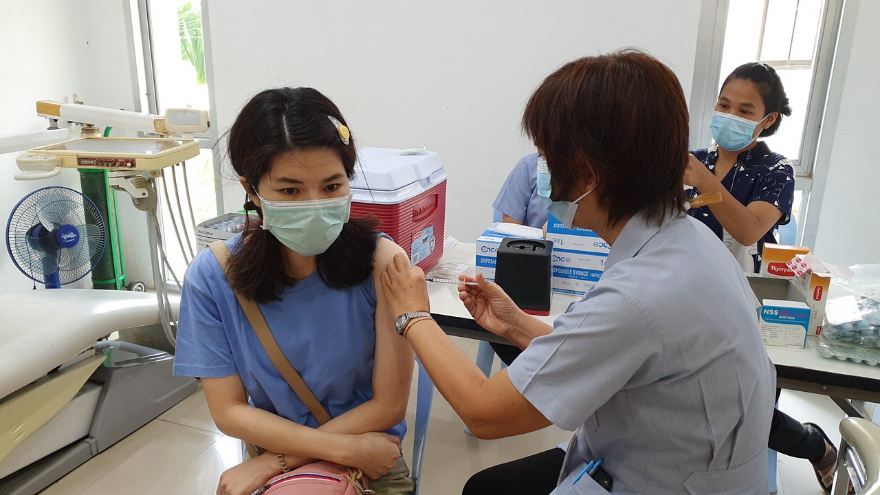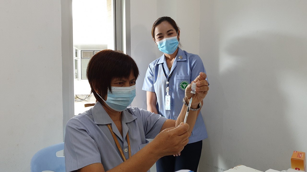 ผอ.รพ.สมเด็จพระยุพราชด่านซ้าย นำบุคลากรเข้าแถวฉีดวัคซีนเข็ม ที่ 3 (ไฟเซอร์) จำนวน 150 คน