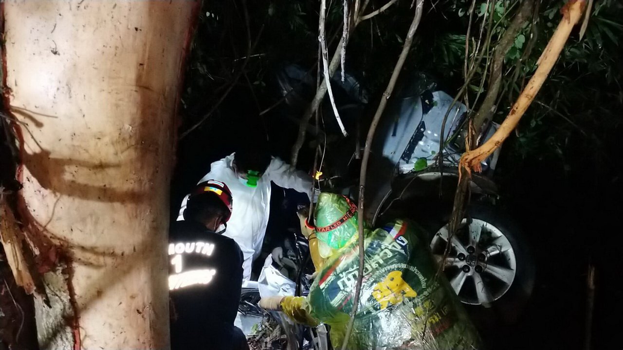 จากการสอบสวนทราบว่า รถเก๋งขับลงเนินมาเมื่อมาถึงที่เกิดเหตุ รถเกิดเสียหลักทำให้รถหมุนหลายตลบ ก่อนลงข้างทางไปชนกับต้นไม้ใหญ่ จนรถพังยับเยิน ส่วนคนขับและผู้โดยสารถูกอัดก็อปปี้ภายในรถจนเสียชีวิต ส่วนผู้ตายทั้งสองคน ยังไม่ทราบว่าเป็นใครมาจากไหน และเช็คทะเบียนรถเพื่อติดตามหาญาติต่อไป