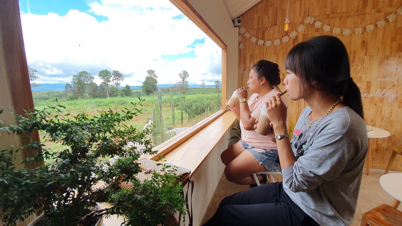 สาววัย 30 ปี ชอบรักการทำขนมเค๊กและกาแฟสด ตัดสินใจใช้พื้นที่คุณตาเปิดร้านคาเฟ่เล็กๆ ชื่อ “ไร่หม่อน คาเฟ่” ขายกาแฟสด ขนมเค้ก สลัดผัก กลางไร่ที่รายล้อมด้วยต้นแก้วมังกรนับแสนต้น และทิวทัศน์ที่เห็นภูเขา ท้องฟ้าที่สวยงาม ที่ถนนสายบ้านหนองสนุ่น-บ้านร่องจิก ต.โคกงาม อ.ด่านซ้าย จ.เลย จนนักท่องเที่ยวแวะผ่านมาเที่ยว ชอบความสวย สงบ บรรยากาศเป็นธรรมชาติ