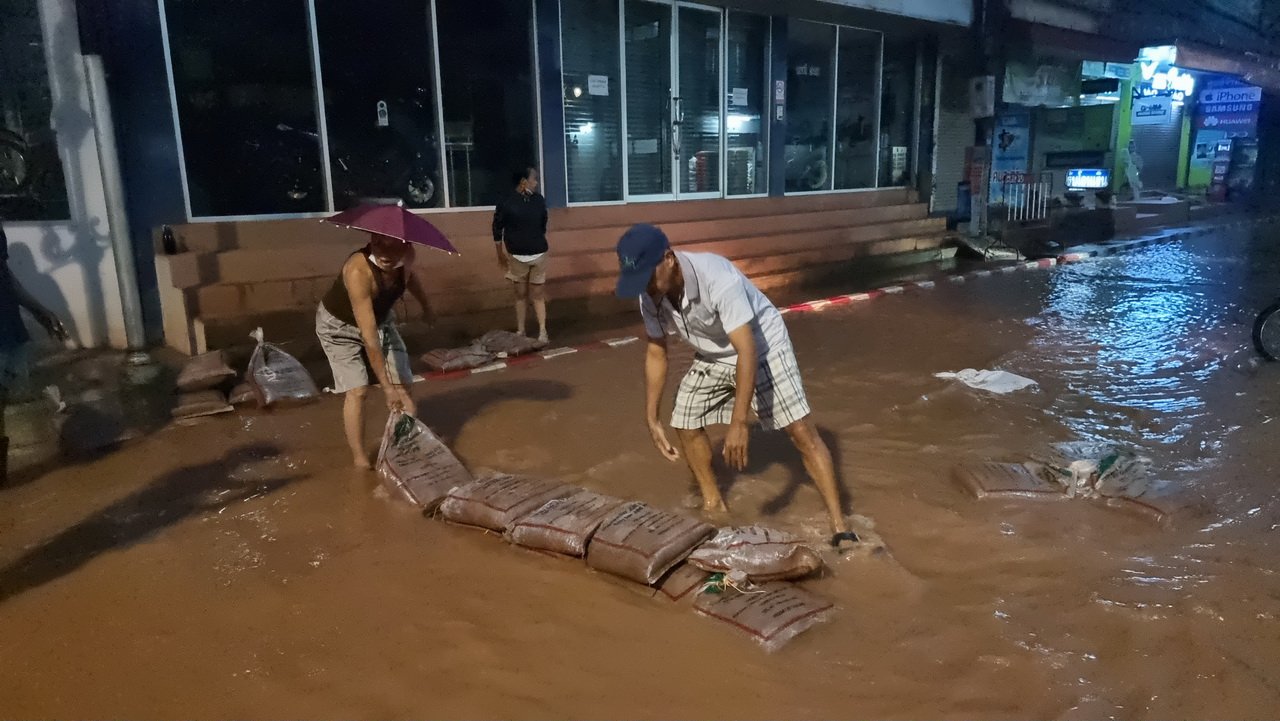 เมื่อเวลา 05.30 น. วันที่ 27 ก.ย.64 เกิดฝนตกติดต่อมาหลายวัน ทำให้น้ำป่าไหลจากภูเขาบ้านหมันขาว ลงมาพื้นที่ ต.กกสะทอน อ.ด่านซ้าย ไหลลงมาลงลำน้ำหมันอย่างรวดเร็วตั้งแต่ตี 3 ที่ผ่านมา ทำให้ระดับน้ำหมันเอ่อท่วมสะพานน้ำหมันเขตเทศบาลตำบลด่านซ้าย เข้าท่วมบ้านเรือนประชาชนที่อยู่ริมน้ำบ้านเหนือ และเขต ทต.ด่านซ้าย หลายสิบหลังคาเรือน ระดับน้ำ 20-70 ซ.ม. ทาง ทต.ด่านซ้าย ได้นำกระสอบทรายมากั้นทางน้ำที่ถนนแก้วอาสา บริเวณก่อนถึงสะพานน้ำหมัน และเอากระสอบทรายไปอุดท่อระบายน้ำไม่ให้น้ำไหลผ่านตลาดด่านซ้าย ทำให้ชาวบ้านเกิดความไม่พอใจที่ปิดกั้นทางน้ำ ไม่ปล่อยให้น้ำลงท่อตามธรรมชาติ เอ่อเข้าท่วมบ้าน จนระดับน้ำเพิ่มขึ้นเข้าท่วมบ้านเรือนประชาชนข้ามสะพานมาบ้านเดิ่นได้รับความเดือดร้อน โดยทาง ทต.ด่านซ้าย อ้างว่า ไม่ให้น้ำท่วมเข้าพื้นที่ร้านค้าในตลาด สร้างความไม่พอใจกับชาวบ้าน จนเกิดมีปากเสียง และช่วยกันรื้อกระสอบทรายออก เพื่อให้น้ำระบายไปตามธรรมชาติ