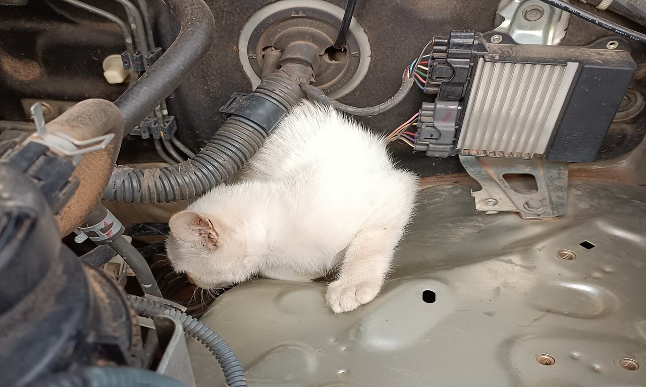 หนุ่มด่านซ้าย ขับกระบะกลับบ้านได้ยินเสียงลูกแมวร้อง จอดรถหาก็ไม่เจอ กลับถึงบ้านเปิดฝากระโปรงดู ตกใจเจอลูกแมวสีขาวซุกในห้องเครื่อง