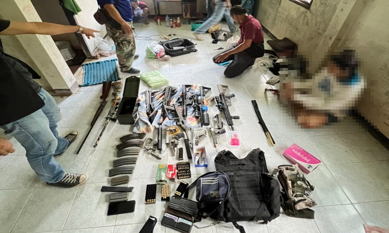ตร.ชุดสืบสวน สภ.เอราวัณ บุกจับหนุ่มค้ายาบ้า ค้นห้องพักตะลึงเจออาวุธสงครามเพียบ ซุกซ่อนในห้องคาบ้านพักสำนักงานป่าไม้