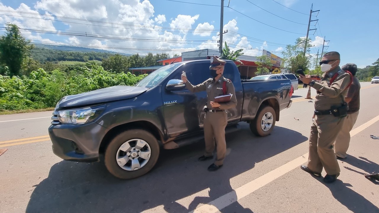 จากการสอบถามคนขับรถกระบะ เล่าว่า ขับรถพาน้าชายไปทำฟันที่โรงพยาบาลด่านซ้าย กำลังกลับบ้านโพนสว่าง ต.วังยาว พอมาถึงที่เกิดเหตุ มีรถมอเตอร์ไซค์ขี่ข้ามวิ่งพุ่งมา ไม่รู้ว่าจะเลี้ยวหรือเปล่า พุ่งชนหน้ารถอย่างจัง จนรถ จยย. และคนขี่กระเด็นไปกว่า 20 เมตร จนได้รับบาดเจ็บสาหัส ส่วนตนเองและน้าไม่ได้รับบาดเจ็บ มีกล้องวงจรปิดร้านขายปุ๋ยริมทางจับภาพไว้ได้ ส่วน พงส.ตรวจที่เกิดเหตุ เก็บหลักฐาน เพื่อรอสอบปากคำคนขับรถกระบะต่อไป