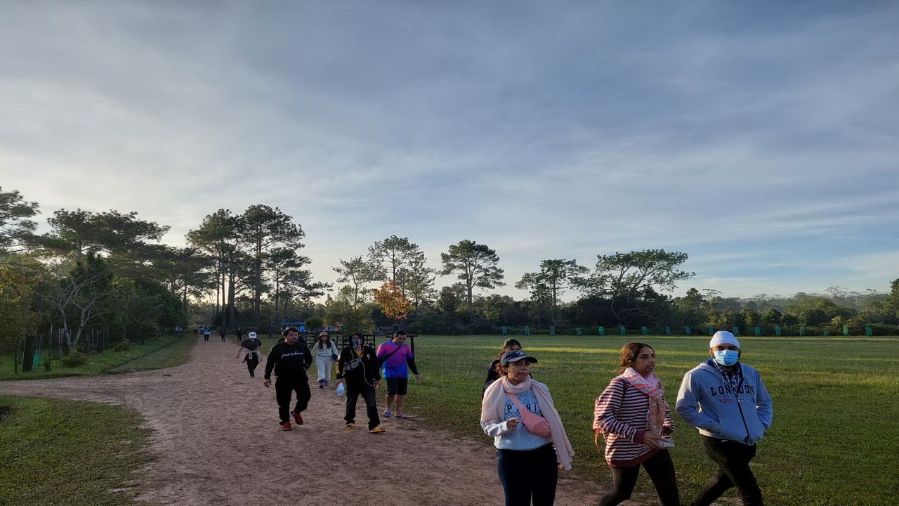 เมื่อเวลา 06.00 น. วันที่ 5 พ.ย.64 วันหยุดสุดสัปดาห์ ที่อุทยานแห่งชาติภูกระดึง จ.เลย มีนักท่องเที่ยวจำนวนมาก เดินทางมาพิชิตยอดภูกระดึง ชมธรรมชาติสองข้างทางขึ้นภูกระดึง ดูความสวยงาม ชมทะเลหมอก สัมผัสอากาศหนาวเย็นของฤดูกาลต้นหนาว ที่ผานกแอ่น อุณหภูมิ 13.5 องศา ที่ต่ำสุดในรอบปี บอกถึงความหนาวเย็นของต้นหนาวมาถึงแล้ว วันนี้มีนักท่องเที่ยวพักที่ยอดภูกระดึง 1,125 คน
