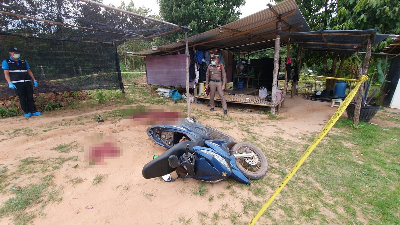 เมื่อเวลา 15.10 น. วันที่ 9 พ.ย.64 ร.ต.อ.มานิตย์ พิมพ์พระลับ รอง สว.(สอบสวน) สภ.ภูเรือ จ.เลย ชุดสืบสวน และ จนท.พฐ.ภ.จว.เลย ตรวจที่เกิดเหตุสวนดอกไม้ หมู่ 5 ต.หนองบัว อ.ภูเรือ ที่หน้ากระท่อมพบกองเลือดที่พื้นดิน และรถ จยย.ฮอนด้า สีฟ้า ทะเบียน 1 กฆ 5679 เลย พลิกคว่ำ ส่วนผู้บาดเจ็บชื่อ นายพงษ์ศรัณย์ จันทะแพง อายุ 28 ปี อยู่หมู่ 5 ต.หนองบัว อ.ภูเรือ จ.เลย ถูกมีดอีโต้ฟันกว่า 10 แผล รถโรงพยาบาลภูเรือนำคนเจ็บส่งโรงพยาบาลไปก่อนหน้า และเสียชีวิตในเวลาต่อมา