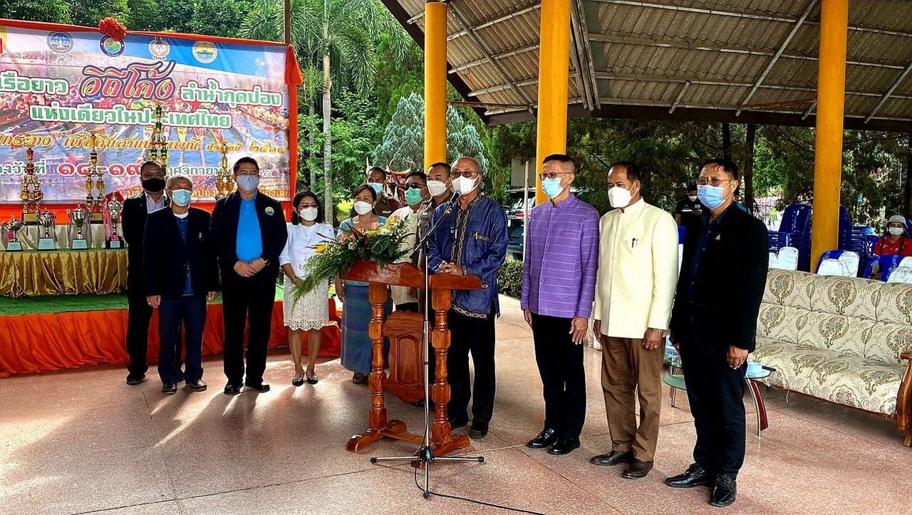 จากนั้นเวลา 09.09 น. เทศบาลเมืองเลย ได้จัดพิธีเปิดการแข่งขันเรือยาว“วิถีโค้ง” ลำน้ำกุดป่อง ประจำปี 2564 โดยมีนายชัยธวัช เนียมศิริ ผู้ว่าราชการจังหวัดเลย เป็นประธานในพิธีเปิด ลั่นฆ้อง 3 ลา และปล่อยผ้าแพรป้าย เป็นสัญลักษณ์การเปิดงาน  โดยการแข่งขันเรือยาวดังกล่าว เป็นกีฬาอย่างหนึ่งที่ช่วยสร้างความสามัคคีในชุมชน ความพร้อมเพรียงและความสมานฉันท์ ซึ่งได้ช่วยกันอนุรักษ์สืบทอดกันมา ซึ่งเป็นการแข่งขันเรือยาวทางโค้งแห่งเดียวในประเทศไทย โดยบรรยากาศเป็นไปด้วยความสนุกสนาน จากประชาชนที่เข้าชมการแข่งขัน และบรรดากองเชียร์คุ้มต่างๆ ซึ่งมีการประกวดชิงเงินรางวัลและถ้วยรางวัล ด้วย  มีเรือยาวฝีพายไม่เกิน 10 คน จาก 15 ทีม จากชุมชนต่างๆ ในเขตเทศบาลเมืองเลยเข้าร่วมแข่งขัน ซึ่งจัดขึ้นระหว่างวันที่ 18-19 พฤศจิกายน 2564