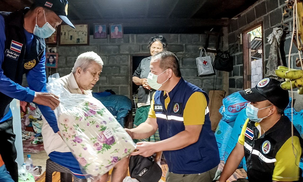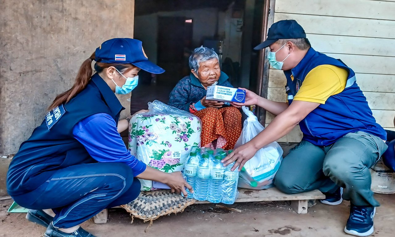 ชุดพัฒนาสัมพันธ์มวลชน กอ.รมน.จังหวัดเลย มอบผ้าห่มกันหนาวพร้อมถุงยังชีพและเจลแอลกอฮอล์ หน้ากากอนามัย ผู้สูงอายุ ป่วย พิการ อาศัยอยู่บนพื้นที่ราบสูง และประสบปัญหาขาดแคลนเครื่องกันหนาว เพื่อบรรเทาความหนาวเย็น หลังสภาพอากาศเริ่มหนาวเย็นลงอย่างต่อเนื่อง