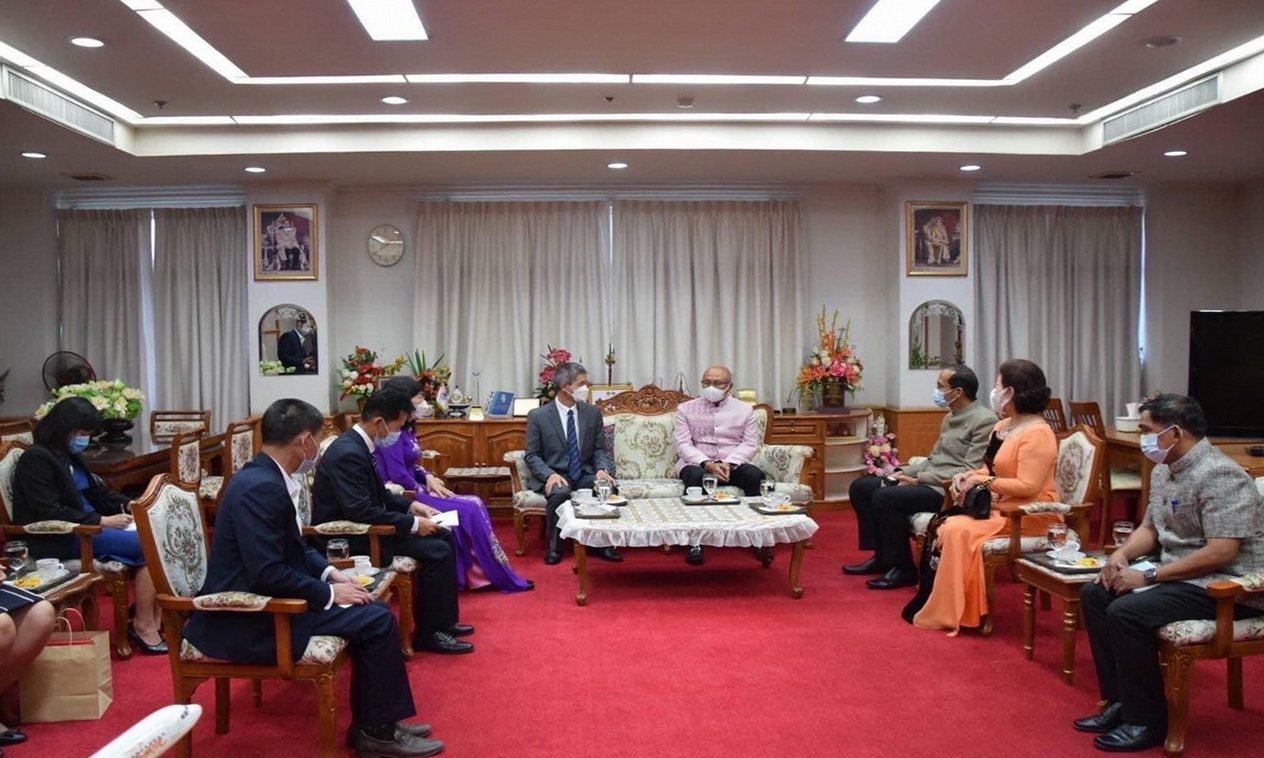 เมื่อเวลา 13.00 น. วันที่ 14 ม.ค.65 ที่ ศาลากลางจังหวัดเลย นายจูดึ๊กหยุง กงสุลใหญ่สาธารณรัฐสังคมนิยมเวียดนาม ประจำจังหวัดขอนแก่น พร้อมคณะ และนักธุรกิจ ห้างค้าปลีกส่ง คุณคำดี พนมเร่งศักดิ์ ประธานกรรมการ ห้าง ส.ทวีภัณฑ์สโตร์ ได้เข้าเยี่ยมคาราวะ นายชัยธวัธ เนียมศิริ ผู้ว่าราชการจังหวัดเลย ในโอกาสเข้ารับตำแหน่งใหม่