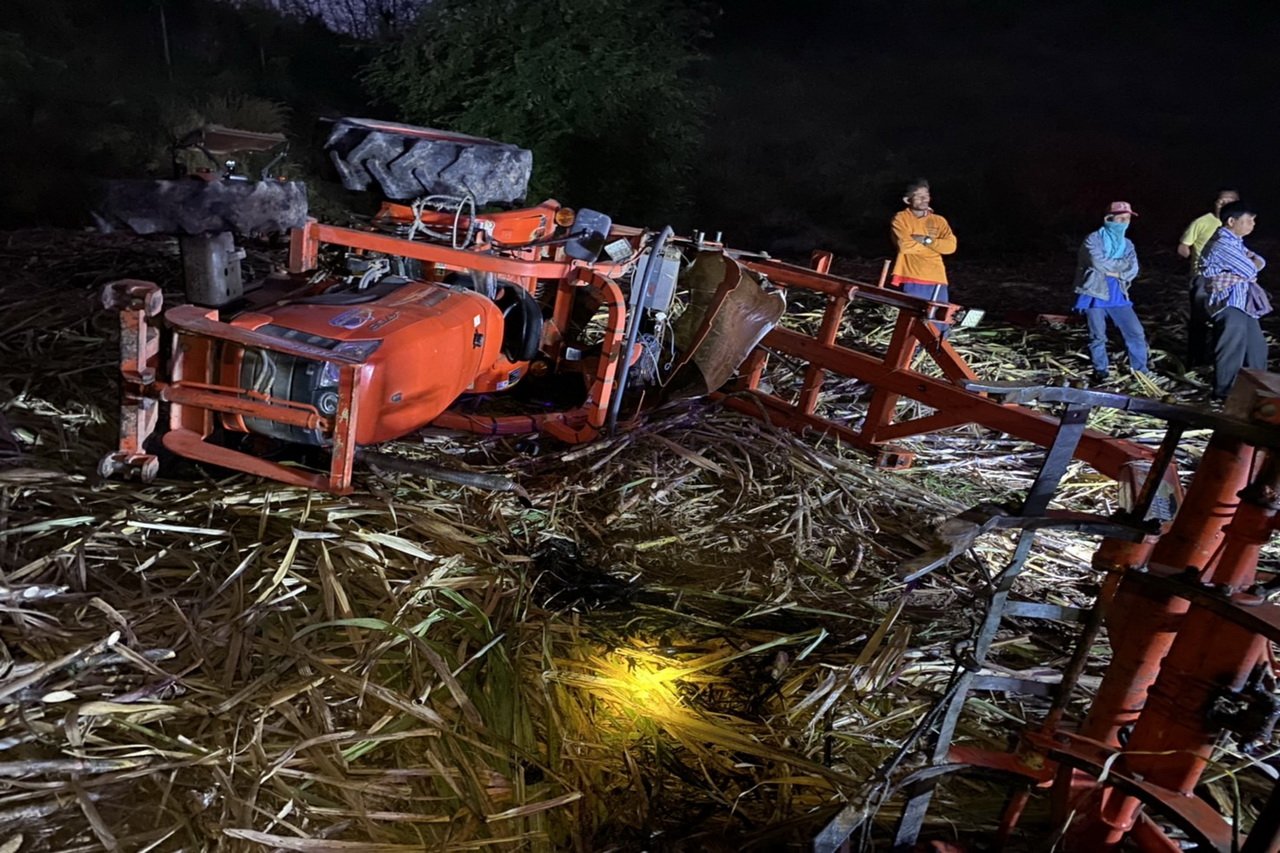 เมื่อเวลา 16.50 น. วันที่ 22 ม.ค.65 ร.ต.อ.สุพจน์ โพธิ์สุวรรณ รอง สว.(สอบสวน) สภ.ภูกระดึง จ.เลย ได้รับแจ้งมีเหตุรถแทรกเตอร์คีบอ้อยพลิกคว่ำทับคนขับตาย ที่ไร่อ้อยบ้านผาสามยอด ต.ผานกเค้า อ.ภูกระดึง เมื่อรับแจ้งประสานไปยังแพทย์ รพ.ภูกระดึง กู้ภัยภูกระดึง เดินทางไปชันสูตรพลิกศพ ที่เกิดเหตุเป็นไร่อ้อย พบรถแทรกเตอร์คีบอ้อย สีส้ม ไม่ทราบทะเบียน พลิกคว่ำตะแครงซ้ายทับร่างนายกวีกร ศรีสะอาด อายุ 45 ปี อยู่บ้านเลขที่ 87 หมู่ 4 ต.ผานกเค้า อ.ภูกระดึง จ.เลย สภาพนอนคว่ำหน้าจนเสียชีวิต กู้ภัยฯ ใช้เครื่องตัดถ่างยกรถดึงร่างของผู้เสียชีวิตออกมา นำส่ง รพ.ภูกระดึง