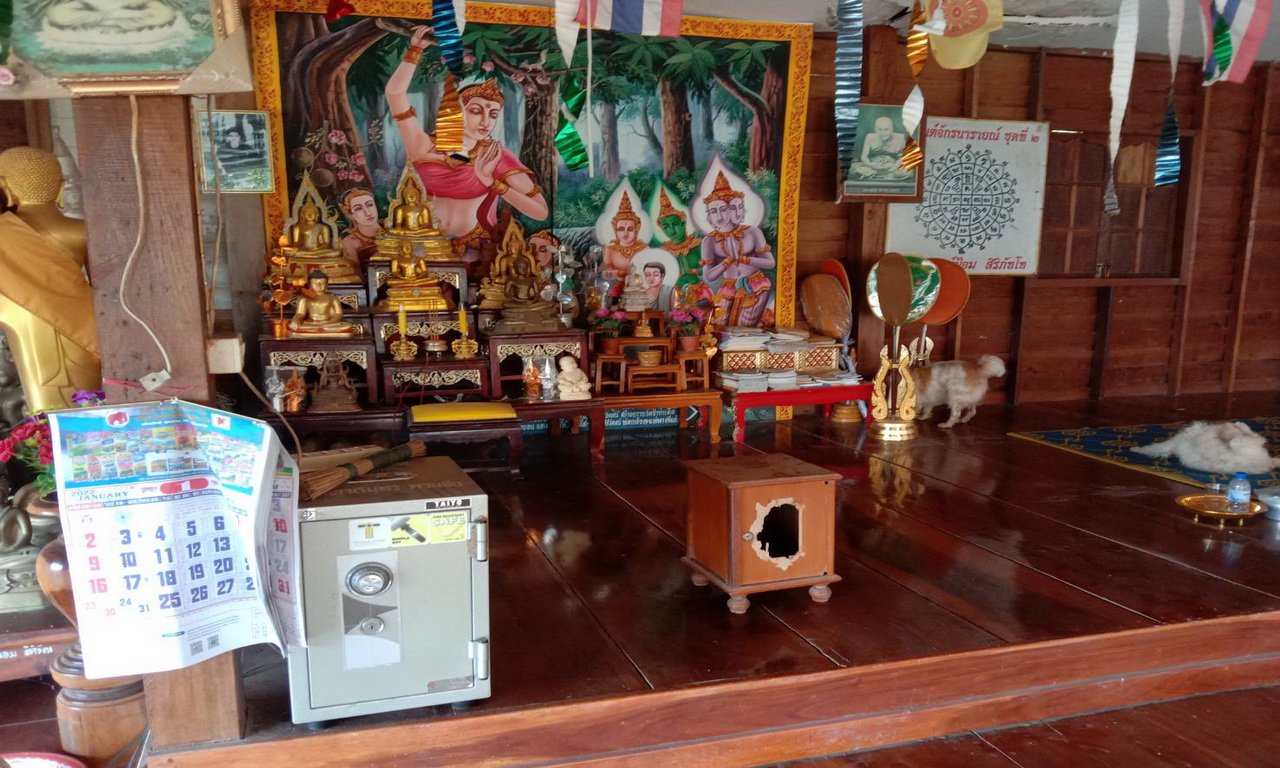 สอบถามพระพล มังคะริโก อายุ 70 ปี เจ้าอาวาสวัด เล่าว่า นี้เป็นครั้งแรกที่ทางวัดถูกคนร้ายเข้ามางัดตู้บริจาค โดยเมื่อเช้ามาทำความสะอาดบนศาลาการเปรียญ เนื่องจากพรุ่งนี้เป็นวันพระใหญ่ เห็นหน้าต่างมีรอยงัดและตู้บริจาคถูกเจาะเป็นรู จึงรีบแจ้งตำรวจ คาดว่าคนร้ายน่าจะเป็นคนในพื้นที่และมาคนเดียว และรู้ว่าตู้รับบริจาคตั้งไว้ที่ไหน ทาง พงส.เก็บหลักฐานและให้ชุดสืบสวนลงหาข่าวจับกุมคนร้ายมาดำเนินคดีตามกฎหมายต่อไป