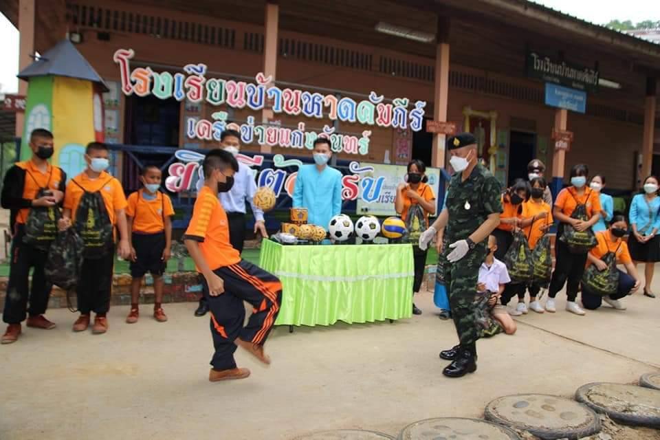 เมื่อวันที่ 15 มีนาคม 2565 ที่โรงเรียนบ้านหาดคัมภีร์ ตำบลหาดคำภีร์ อ.ปากชม จ.เลย พลตรี ณรงค์ สวนแก้ว ผู้บัญชาการกองกำลังสุรศักดิ์มนตรี พร้อมด้วย นางพัชราวดี สวนแก้ว ประธานสมาคมแม่บ้านทหารบก สาขา กองพลทหารราบที่ 3 และคณะ ได้เดินทางไปมอบถุงยังชีพเพื่อการศึกษาให้น้อง ๆ เด็กนักเรียน จำนวน 43 คน และมอบอุปกรณ์กีฬา ที่โรงเรียนบ้านหาดคัมภีร์ ตามนโยบายผู้บัญชาการทหารบก เพื่อสร้างโอกาสให้เด็กไทยถิ่นทุรกันดารที่อยู่ในพื้นที่ห่างไกล ได้เข้าถึงแหล่งเรียนรู้ทางการศึกษา อีกทั้ง ยังเป็นการส่งมอบความสุข สร้างรอยยิ้มและสร้างบรรยากาศ ที่แสนอบอุ่น และส่งเสริมให้เยาวชนได้ออกกำลังกาย ก่อให้เกิดความสามัคคี ความเสียสละ และความมีน้ำใจต่อกัน และได้เดินทางไปตรวจเยี่ยมและมอบสิ่งของบำรุงขวัญให้กับกำลังพล ที่ฐานปฏิบัติการกองร้อยทหารพรานที่ 2103 หน่วยเฉพาะกิจกรมทหารพรานที่ 21 กองกำลังสุรศักดิ์มนตรี ตำบลปากชม อำเภอปากชม จังหวัดเลย เพื่อเป็นขวัญกำลังใจให้กับกำลังพลที่ปฏิบัติงานตามแนวชายแดน ได้ให้โอวาทโดยเน้นย้ำการขจัดภัยคุกคามของประเทศชาติทุกรูปแบบ เพื่อสร้างความเชื่อมั่น สร้างความปลอดภัย และเป็นที่พึ่งให้กับพี่น้องประชาชนในทุกโอกาส พร้อมทั้งให้ข้อห่วงใยในการปฏิบัติงานและการป้องกันตนเองในห้วงสถานการณ์ COVID-19 โดยมี พ.อ.อุทัย นิลเนตร ผบ.ฉก.ทพ.21/ผบ.บก.ควบคุมที่ 3 และ นางสิริกัญญา นิลเนตร ประธานสมาคมแม่บ้าน ทบ. สาขา กรม ทพ.21 เข้าร่วมกิจกรรมฯ ในการดำเนินกิจกรรมอยู่ภายใต้มาตรการป้องกันโควิด-19 อย่างเคร่งครัด