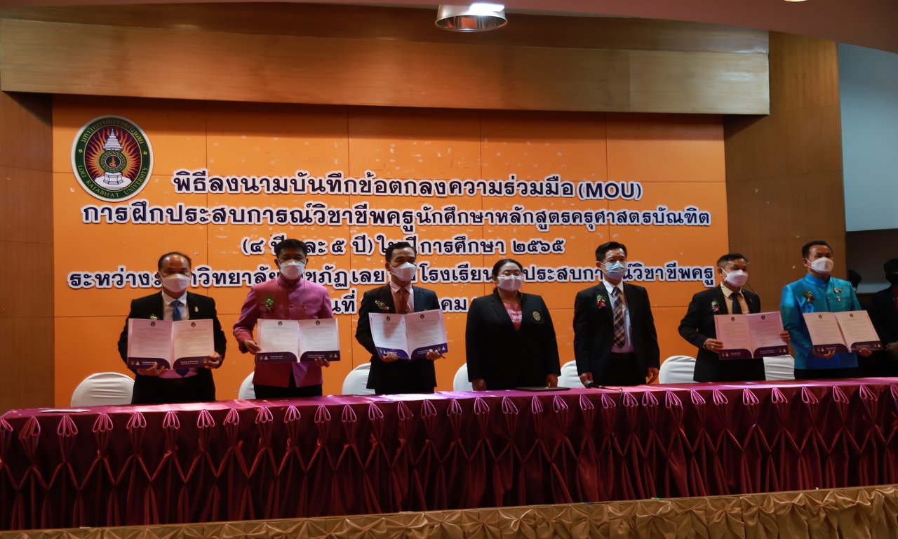 โดยมีจุดประสงค์เพื่อให้นักศึกษามีความสามารถในการปฏิบัติการสอน นักศึกษาชั้นปีที่ 4 ฝึกประสบการณ์วิชาชีพครูตลอดปีการศึกษา จำนวน 1,080 ชั่วโมง มีจุดประสงค์เพื่อให้นักศึกษามีความเป็นครูมืออาชีพ ทั้งนี้ เป็นไปตามข้อบังคับคุรุสภาว่าด้วยมาตรฐาน วิชาชีพ (ฉบับที่ 4) พ.ศ. 2562 ดังนั้น เพื่อให้การฝึกประสบการณ์วิชาชีพครูเป็นไปตามหลักสูตรที่กำหนด คณะครุศาสตร์จึงได้ เชิญผู้บริหารการศึกษาและผู้บริหารสถานศึกษา เข้าร่วมเป็นสถาบันเครือข่ายผลิตครูคุณภาพ (หลักสูตร4ปี) และสร้างความร่วมมือในด้านการฝึกประสบการณ์วิชาชีพครู ด้านการวิจัย และด้านวิชาการ อันจะส่งผลในการผลิตและพัฒนาครูคุณภาพตามจุดมุ่งหมายของหลักสูตรครุศาสตรบัณฑิต (4 ปี) หลักสูตร ปรับปรุง พ.ศ. 2562 ในปีการศึกษา 2565 มีนักศึกษาในหลักสูตร ออกฝึก ระสบการณ์วิชาชีพครู ในชั้นปีที่ 4 จำนวน 400 คน และหลักสูตรครุศาสตร์บัณฑิต 5 ปี ในปีการศึกษา 2565 มีนักศึกษาในหลักสูตร ออกฝึก ประสบการณ์วิชาชีพครู ในชั้นปีที่ 5 จำนวน 345 คน รวมทั้งสองหลักสูตร คณะครุศาสตร์มีนักศึกษา ออกฝึกประสบการณ์วิชาชีพครู ในปีการศึกษา 2565 รวมทั้งสิ้น 745 คนคณะครุศาสตร์ มหาวิทยาลัยราชภัฏเลย และพิธี มอบเกียรติบัตรแก่สถานศึกษา ที่ร่วมเป็นเครือข่ายผลิตและพัฒนาครูขั้นปฏิบัติการสอนในสถานศึกษา ประจำปีการศึกษา 2564