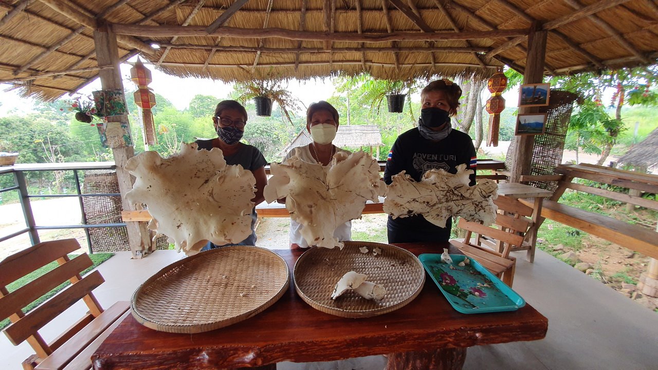 วันที่ 31 มี.ค.65 ยายบุสดี ทองปั้น อายุ 66 ปี อยู่ ต.สานตม อ.ภูเรือ จ.เลย เข้าป่าชุมชนข้างวัดป่าห้วยลาด ต.สานตม เจอเห็ดไฮยักษ์ 2 ต้น ขนาดกว้าง 60-70 ซ.ม. หนัก 3-5 กก. ชาวบ้านรู้ข่าวรีบมาดูขอเลขเด็ด ส่วนเจ้าของเห็ดบอกเกิดมาก็ไม่เคยเห็นใหญ่ขนาดนี้