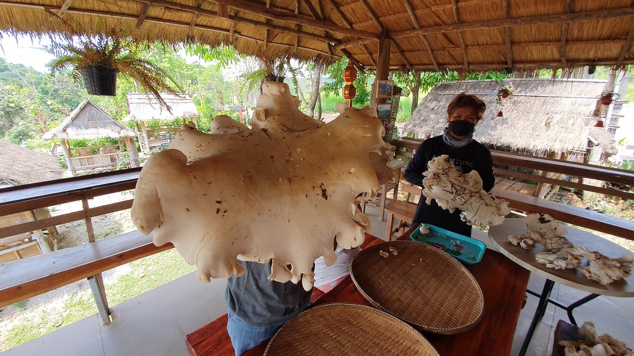 ยายบุสดี ทองปั้น เล่าว่า เข้าไปในป่าเก็บเห็ดไฮที่ผุดขึ้นมาตามผิวดิน จนกระทั่งไปเห็นถุงมาวางทิ้ง จึงได้เดินเข้าไปดูต้องตกใจพบว่าเป็นเห็ดไฮยักษ์ กว้าง 60-70 ซ.ม. หนัก 3-5 กก. จำนวน 2 ดอก เกิดมาก็เพิ่งเจอครั้งแรกในชีวิต เพราะปกติจะเก็บเห็ดไฮที่เป็นดอกตูมมากิน แต่นี้เจอเป็นดอกบาน และใหญ่มาก จึงรีบเก็บกลับบ้านให้ลูกสาวดู จนมีชาวบ้านทราบข่าวแห่กันมาดู บอกว่าไม่เคยเห็ดใหญ่ขนาดนี้ และตีเป็นเลขเด็ดว่า เห็ดเป็นเลข 7 พบ 2 ดอก เป็น 72 บางคนก็ว่า 52 ส่วนเห็ดดอกนี้เอามาต้มกินกับน้ำพริกแจ่ว จะกินกันทั้งครอบครัวก็คงไม่หมด แต่จะแบ่งให้ญาติและเพื่อนบ้านช่วยกันกิน