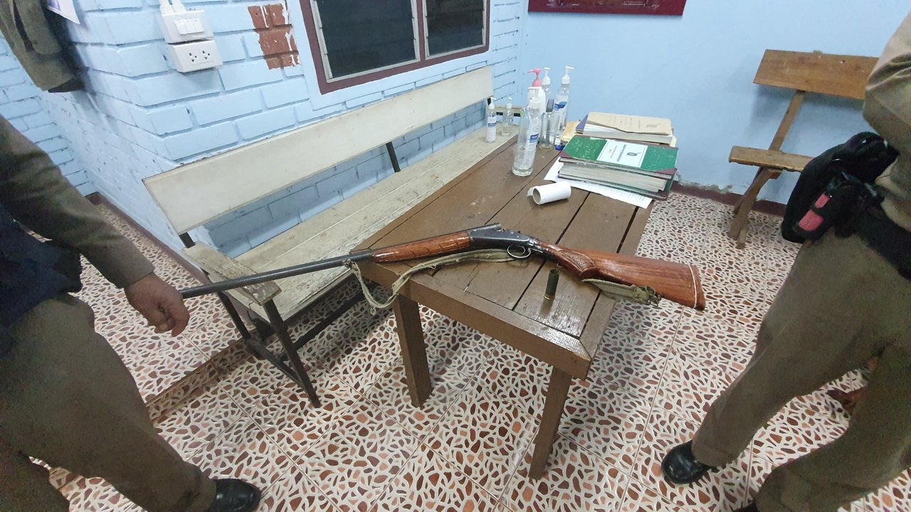 เมื่อเวลา 21.00 น. วันที่ 4 เม.ย.65 ตร.ชุดสืบสวน สภ.ด่านซ้าย จ.เลย นำกำลังเดินทางไปที่เกิดเหตุ ยิงกันภายในหมู่บ้านโป่ง หมู่ 1 ต.โป่ง อ.ด่านซ้าย พบนายอนันย์ เพิ่มพร อายุ 51 ปี (น้าเขย) มอบอาวุธปืนลูกซองยาวไทยประดิษฐ์ และปลอกกระสุนปืนที่ยิงแล้ว 1 ปลอก ที่แย่งมาจากนายวสันต์ สุขศรี อายุ 42 ปี (หลาน) ที่พยายามเอาปืนลูกซองยิงตนเอง จนท.จึงได้ตรวจยึดเอาไว้