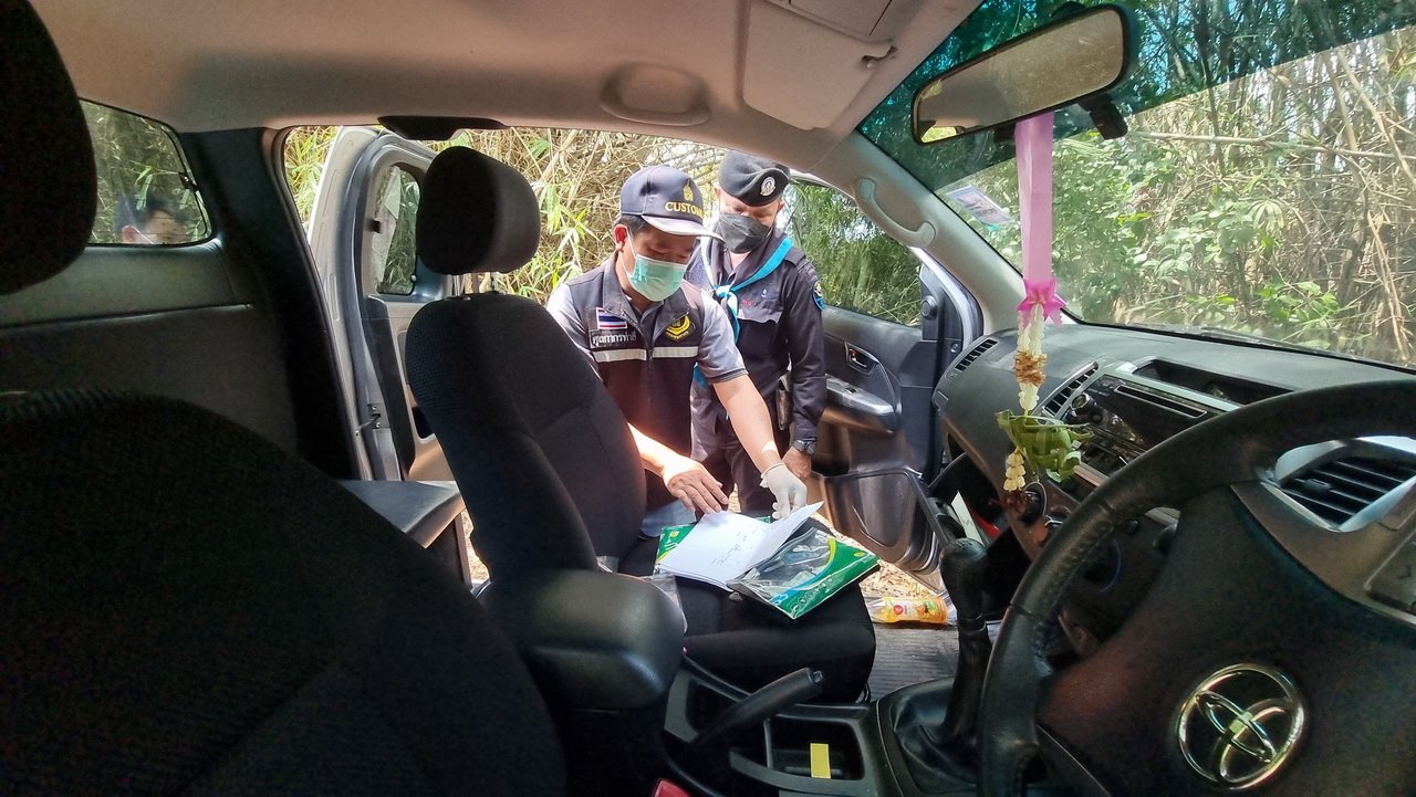 เมื่อเวลา 09.30 น. วันที่ 16 เม.ย.65 กองกำลังสุรศักดิ์มนตรี โดย พันเอกอุทัย นิลเนตร ผู้บังคับการกรมทหารพรานที่ 21/ ผู้บังคับหน่วยเฉพาะกิจกรมทหารพรานที่ 21 จ.เลย ได้รับแจ้งจะมีการลักลอบนำรถกระบะข้ามไปยังฝั่งลาว ในช่วงเทศกาลสงกรานต์ แม่น้ำเหือง บ้านหนองปกติ ต.น้ำทูน อ.ท่าลี่ จ.เลย มอบหมายให้ ร.อ.อาคม สมสนุก ผบ.ร้อย ทพ.2102 อ.ท่าลี่ ประสานไปยัง นายภาณุเมศวร์ คำเพราะ นักวิชาการการศุลกากร อ.ท่าลี่ ฝ่ายปกครอง อ.ท่าลี่ สภ.โพนทอง บูรณาการออกตรวจสอบแม่น้ำเหือง บ้านหนองปกติ ต.น้ำทูน พบชาย 6 คน กำลังใช้รถไถลากรถกระบะโตโยต้าวีโก้ 4 ประตู สีบรอนด์เงิน ไม่ทราบทะเบียน ข้ามแม่น้ำเหืองไปยัง สปป.ลาว จนท.แสดงตัวเพื่อขอตรวจค้น ทำให้กลุ่มชายดังกล่าวตกใจ รีบดึงรถกระบะข้ามลาวไปได้และหลบหนี และยังพบรถกระบะโตโยต้าแค๊ป สีบรอนด์เงิน ทะเบียน บว 8235 ราชบุรี ที่เตรียมข้ามแม่น้ำเหือง จึงได้ทำการตรวจยึด นำรถกระบะของกลางไปตรวจสอบที่ด่านศุลกากร อ.ท่าลี่ เพื่อตรวจสอบหาเจ้าของรถต่อไป