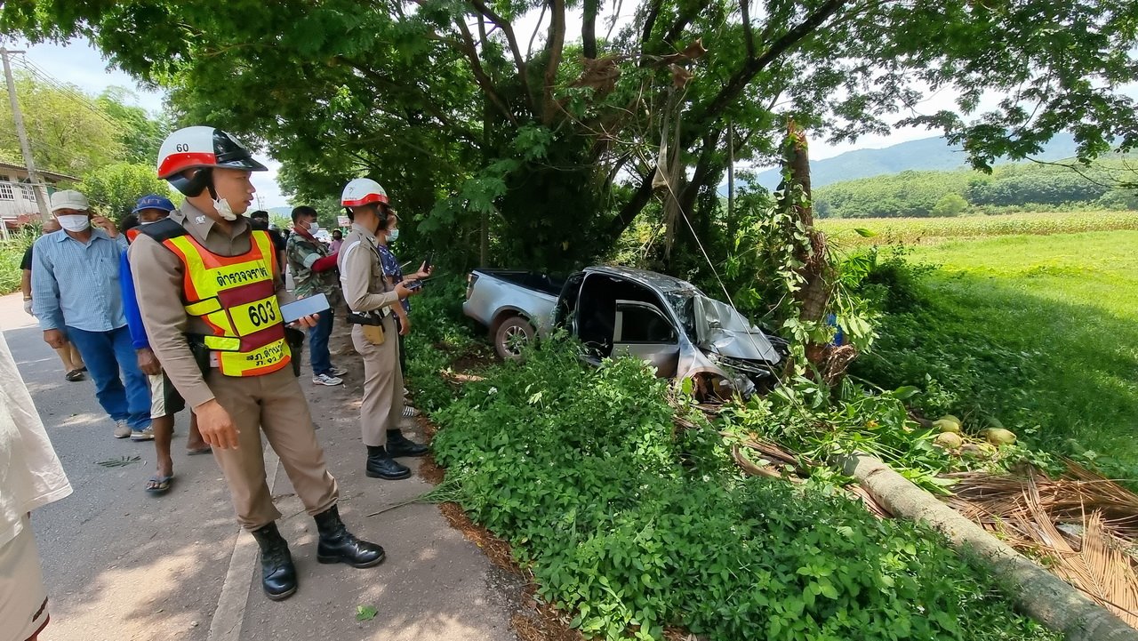 เวลา 12.10 น. วันที่ 30 เม.ย.65 ตร.สภ.ด่านซ้าย จ.เลย แพทย์ รพร.ด่านซ้าย กู้ภัยสัจจะไมตรี กู้ภัยสว่างคีรีธรรม จุดด่านซ้าย เดินทางไปที่เกิดเหตุ ถนนสายด่านซ้าย-ปากหมัน บ้านหนองฟ้าแลบ ต.ด่านซ้าย อ.ด่านซ้าย พบรถกระบะอีซูซุดีแม็กแค๊ป สีบรอนด์เงิน ทะเบียน 3 ฒจ 4387 เลย ชนกับต้นมะพร้าวสภาพหน้ารถพักยับเยิน พบคนขับชื่อนายเทพฤทธิ์ อายุประมาณ 30-40 ปี อยู่บ้านห้วยปลาผา ต.นาดี อ.ด่านซ้าย จ.เลย บาดเจ็บสลบอยู่ภายในที่นั่งคนขับ กู้ภัยฯ ช่วยเหลือนำตัวออกมาจากรถ ห่างออกไปพบต้นมะพร้าวทับรถ จยย.ฮอนด้าเวฟ สีเทาดำ ทะเบียน 1 กญ 4011 เลย มีนายบัญชา แสนโสภา อายุ 65 ปี อยู่บ้านหนองปกติ ต.อาฮี อ.ท่าลี่ จ.เลย คนขี่ จยย.ได้รับบาดเจ็บ กู้ภัยฯ นำร่างผู้บาดเจ็บทั้งสองรายส่ง รพร.ด่านซ้าย แต่นายนายเทพฤทธิ์ คนขับรถกระบะทนเจ็บไม่ไหวเสียชีวิตที่ รพร.ด่านซ้าย