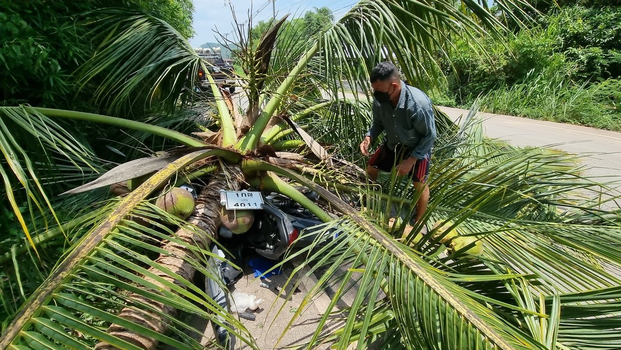 จากการสอบสวนทราบว่ารถกระบะขับมาด้วยความเร็วมุ่งไป อ.ด่านซ้าย เมื่อมาถึงที่เกิดเหตุรถเกิดเสียหลัก พุ่งชนต้นมะพร้าวจนเสียงดังสนั่น ทำให้คนขับได้รับบาดเจ็บสลบอยู่ในรถ ขณะเดียวกันนายบัญชา แสนโสภา ขี่ จยย. ผ่านมาเห็นจอดรถเพื่อลงไปช่วยเหลือ จู่ๆ ต้นมะพร้าวที่ถูกรถกระบะพุ่งชนหักโค่นลงมาทับรถ จยย.และคนขี่ จนได้รับบาดเจ็บ จนมีชาวบ้านมาช่วยและแจ้งตำรวจ
