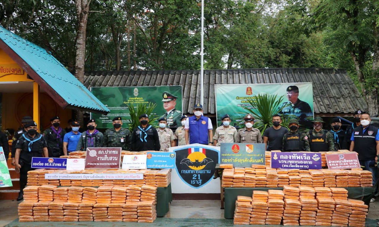 เมื่อเวลา 15.00 น. วันที่ 14 พ.ค.65 ที่ บก.ร้อย.ทพ.2103 อ.ปากชม จ.เลย พ.อ.อุทัย นิลเนตร ผบ.กรม ทพ.21/ผบ.ฉก.ทพ.21 จ.เลย นายกฤษฏา โพธิชัย นายอำเภอปากชม กองกำลังสุรศักดิ์มนตรี กอ.รมน.เลย สภ.ปากชม ตชด.246 นรข.เชียงคาน ตร.น้ำเชียงคาน ฝ่ายปกครอง อ.ปากชม ร่วมกันแถลงข่าวตรวจยึดยาบ้า 24 กระสอบ รวม 960 แท่ง ริมแม่น้ำโขง อ.ปากชม จ.เลย