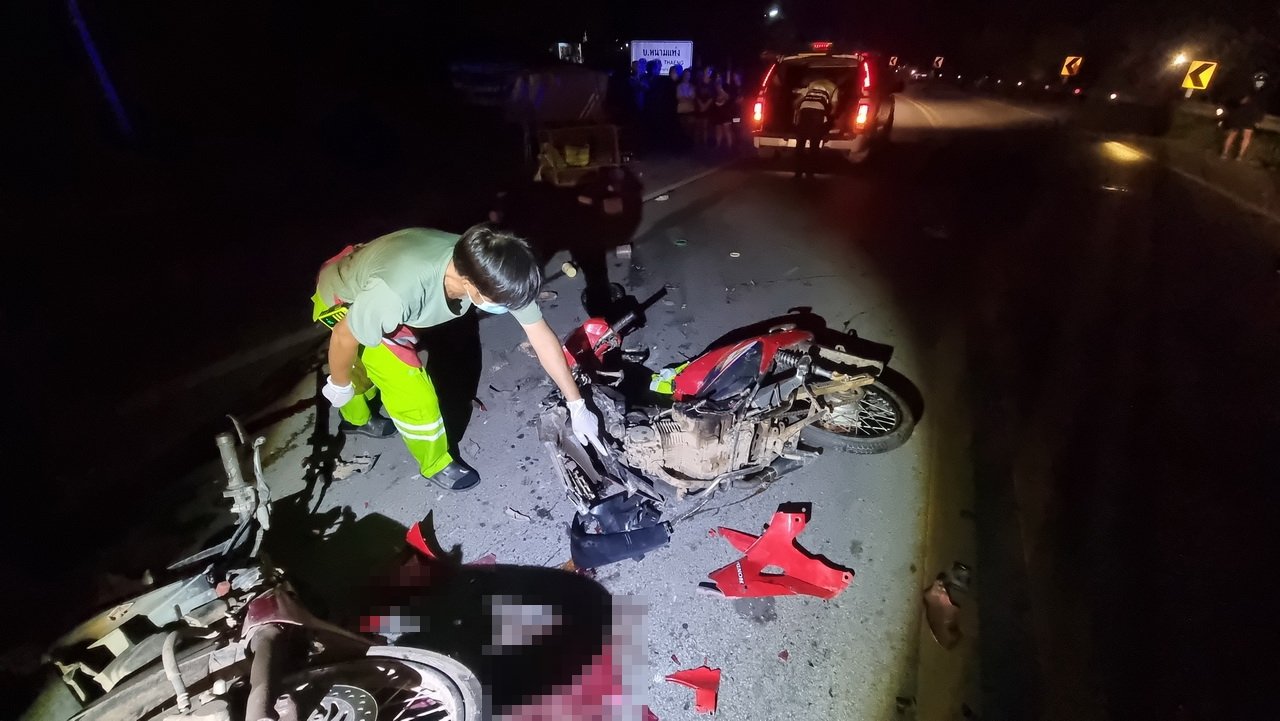 เมื่อเวลา 19.30 น. วันที่ 29 พ.ค.65 ร.ต.อ.ชัยยุทธ โกษาจันทร์ รอง สว.(สอบสวน) สภ.ด่านซ้าย จ.เลย ได้รับแจ้งมีเหตุรถ จยย.ชนประสานงารถซาเล้ง มีผู้เสียชีวิตและบาดเจ็บ ทางขึ้นเขาท้ายหมู่บ้านนาแท่ง ต.ด่านซ้าย อ.ด่านซ้าย เมื่อรับแจ้งประสานไปยัง แพทย์ รพร.ด่านซ้าย กู้ภัยสัจจะไมตรี เดินทางไปที่เกิดเหตุ พบรถ จยย.ฮอนด้าเวฟ สีแดง ไม่ติดแผ่นป้ายทะเบียน ชนประสานงากับรถ จยย.ซาเล้ง ฮอนด้าเวฟ สีแดง ทะเบียน กลบ 618 เลย ทางเนินลงเขา สภาพรถทั้งสองคันพังยับเยิน พบนายวรพงษ์ อายุ 16 ปี คนขี่ จยย.ฮอนด้า ได้รับบาดเจ็บสาหัส แขน ขา ผิดรูป และนายธีระศักดิ์ อายุ 15 ปี คนซ้อนท้ายบาดเจ็บเล็กน้อย ทั้งสองคนอยู่บ้านหนองสิม ต.นามาลา อ.นาแห้ว จ.เลย และพบนายไชยกร ขันทวิชัย อายุ 49 ปี คนขี่ รถซาเล้งพ่วงข้าง นอนคว่ำหน้าเสียชีวิต สภาพกระหม่อมยุบ ขาผิดรูป กู้ภัยฯ นำคนเจ็บและผู้เสียชีวิตส่ง รพร.ด่านซ้าย