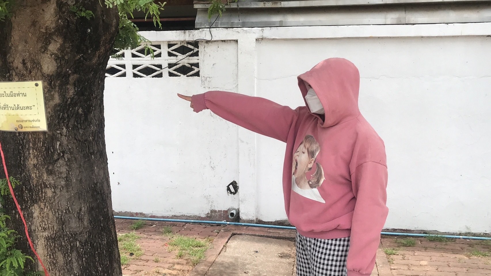 จากนั้นก็เดินถือมีดไปมา ข้ามถนนไปอีกฝั่งแล้วเอามีดแทงต้นไม้ให้ดูว่าให้ระวังตัว ตอนนั้นทุกคนตกใจกลัวกันมาก อยากฝากไปถึงตำรวจช่วยออกมาตรวจตราดูหน่อย เพราะช่วงเย็นจะมีชาวบ้านมาออกกำลังกายและล้อมวงกินข้าวกัน ไม่อยากให้เกิดเรื่องจนมีผู้บาดเจ็บหรือเสียชีวิต