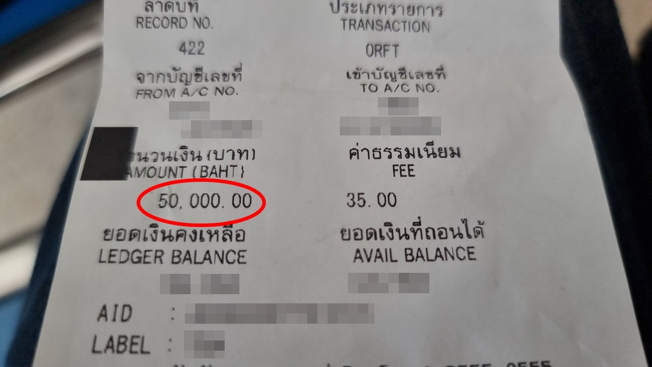 กระทั่งมีชายอ้างว่าเป็นนายทุนรับจำนำรถคันที่หาย บอกว่าต้องโอนเงินมาไถ่ถอน 50,000บาท ครั้งแรกปฎิเสธไปกลัวจะโดนหลอก แต่ชายดังกล่าวก็โทรมาหว่านล้อมอีก จนอยากได้รถคืน จึงตัดสินในโอนเงินจาก ธกส.เลย ไปที่ธนาคารทหารไทยธนชาติ จำนวน 50,000 บาท โอนเสร็จจะนำรถไปส่งที่หน้า ธกส.เลย หลังโอนเสร็จถูกบล็อกมือถือติดต่อไม่ได้อีกเลย จึงรู้ว่าโดนหลอก จึงรีบมาแจ้งความ