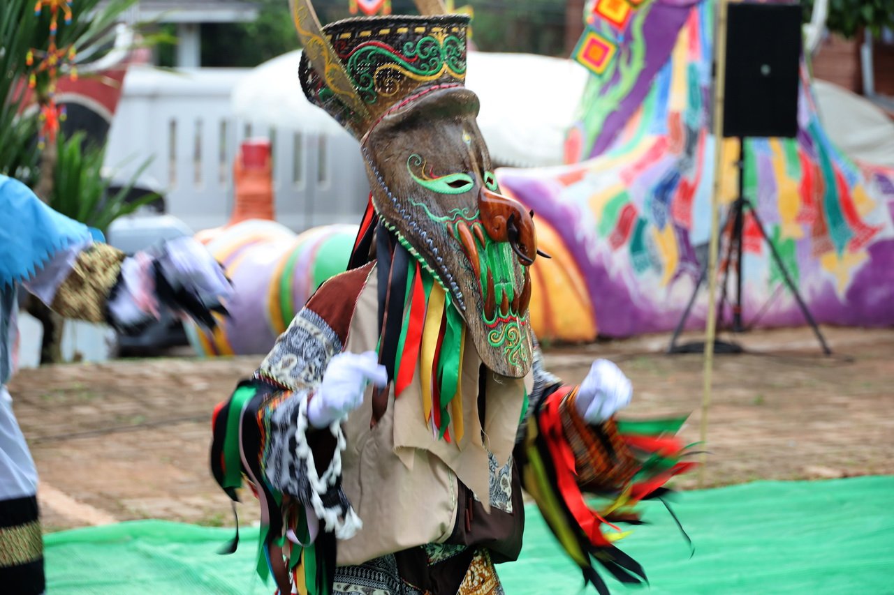 งานบุญประเพณีและการละเล่นผีตาโขน และหน้ากากนานาชาติ จัดขึ้นระหว่างวันที่ 1-3 กรกฎาคม 65 ซึ่งปีนี้จัดอย่างยิ่งใหญ่เพื่อรอนักท่องเที่ยวมาสัมผัส ชม วัฒนธรรมการละเล่นผีตาโขนที่มีที่เดียวในโลก ในวันแรกวันที่ 1 ก.ค.65 พิธีบวชพราหมณ์ พิธีเบิกพระอุปคุต ตักบาตร พิธีบายศรีเจ้าพ่อกวน เจ้ามานางเทียม ขบวนแห่เจ้าพ่อไปวัดโพนชัย และขบวนผีตาโขน ชมการแสดงหน้ากากนานาชาติ จากกระทรวงวัฒนธรรม ประเทศสาธารณรัฐประชาธิปไตยประชาชน ลาว จีน เกาหลีใต้ และไทย การประกวดผลงานหน้ากากผีตาโขน ประเภทอัตลักษณ์งดงาม ประกวดแข่งขันวาดหน้ากากผีตาโขน ประเภท จิตวิญญาณสร้างสรรค์