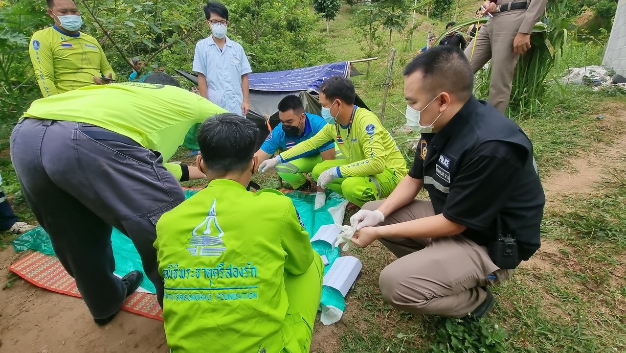 เมื่อเวลา 09.00 น. วันที่ 24 มิ.ย.65 ตร.สภ.ด่านซ้าย จ.เลย แพทย์ รพร.ด่านซ้าย กู้ภัยสัจจะไมตรี เดินทางไปที่เกิดเหตุ ผู้เสียชีวิตในกระท่อมสวนเงาะ ท้ายหมู่บ้านหนามแท่ง ต.ด่านซ้าย อ.ด่านซ้าย จ.เลย พบผู้เสียชีวิตเป็นชายสภาพนอนเสียชีวิตในกระท่อม สวมเสื้อทหารพราน ชื่อนายปรีชา อายุ 57 ปี แพทย์ตรวจรางกายไม่พบถูกทำร้ายร่างกาย พบที่แขน ขา ทั้ง 2 ข้าง มีแผลผุพอง ตกสะเก็ด เหมือนถูกแมลงกัด เสียชีวิตมาแล้ว 6-12 ช.ม.