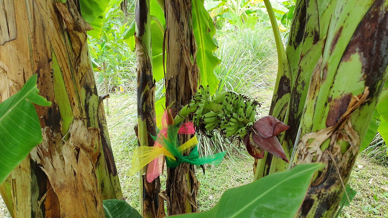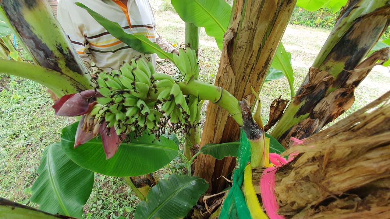 นายประมวล ลาภจิต เจ้าของบ้าน เล่าว่า ตนเองปลูกกล้วยน้ำหว้าที่หน้าบ้านจำนวนหลายต้น พบว่ามีอยู่ 1 ต้น มีเครือกล้วยออกมากลางลำต้น นับได้จำนวน 10 หวี จนมีชาวบ้านทราบข่าวมาดู ซื้อผ้าแพร่ 3 สีมาผูก จุดธูป 3 ดอก และน้ำอบไทย มาถูหาตัวเลขเด็ด จนฉลากกินแบ่งรัฐบาลออก พบว่าแต่ละคนมีโชคลาภกันถ้วนหน้า