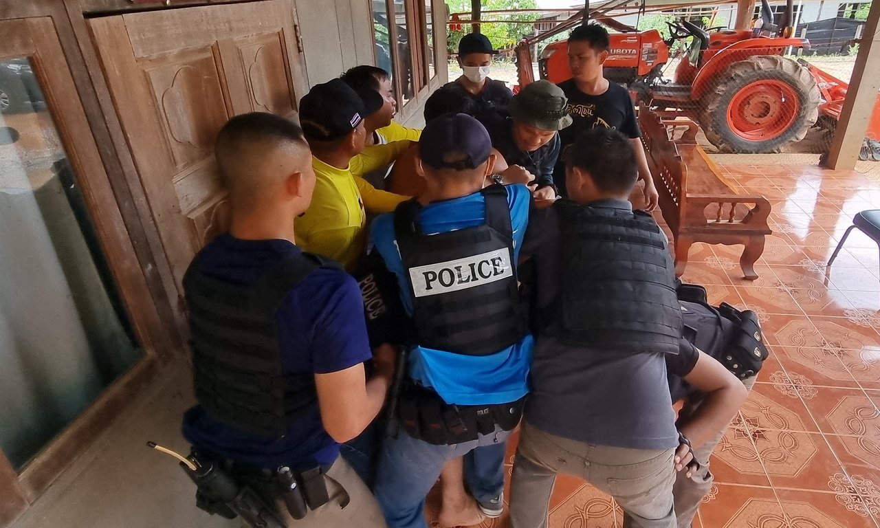 เมื่อเวลา 09.00 น. วันที่ 21 ก.ค.65 ร.ต.อ.ปริพล แก้วพล รอง สว.สส.สภ.โคกงาม จ.เลย พร้อมด้วยชุดสืบสวน กว่า 10 นาย พร้อมอุปกรณ์ไม้ง่าม และประสานไปยังผู้ใหญ่บ้านไปที่เกิดเหตุ หมู่ 6 ต.โพนสูง อ.ด่านซ้าย พบนายธวัชชัย อายุ 29 ปี อยู่ในอาการคลุ้มคลั่งถือมีดพร้าและขวาน จนท.เข้าเกลี่ยกล่อมอยู่นาน ก็ไม่ยอมมอบตัว ตร.ตัดสินใจปืนไฟฟ้ายิงเข้า 1 นัดที่ขา ทำให้นายธวัชชัยโมโหและโกรธถือมีดและขวาน วิ่งหนีเข้าไปในสวนหลังบ้าน จนท.ต้องกระจายกำลังออกตามมาตัว