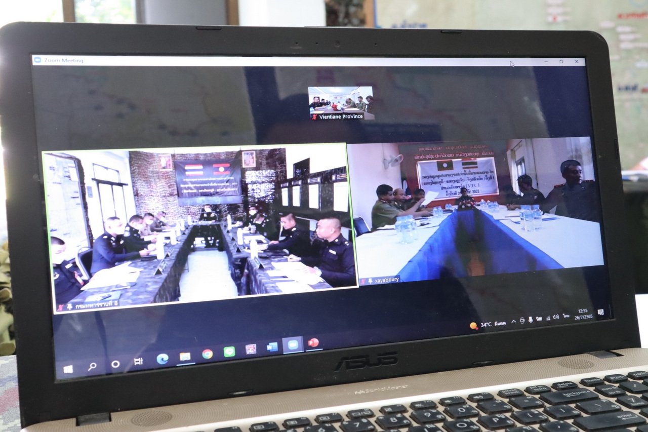 วันที่ 26 ก.ค.65 พันเอก ณรงค์ วิชญาณวรวุฒิ ผู้บังคับการกองบังคับการควบคุมที่ 3 ผู้แทน พล.ต.ณรงค์ สวนแก้ว ผบ.กกล.สุรศักดิ์มนตรี หัวหน้าชุดประสานงานประจำพื้นที่ชายแดนไทย-ลาว พร้อมด้วย พันเอก อุทัย นิลเนตร ผู้บังคับการหน่วยเฉพาะกิจกรมทหารพรานที่ 21 รองหัวหน้าชุดประสานงานประจำพื้นที่ชายแดนไทย-ลาว และพันโท ประดิษฐ์ พรมเรียน รองผู้บังคับการกองบังคับการควบคุมที่ 3 ร่วมประชุมเพื่อกระชับความสัมพันธ์ด้วยการจัดประชุมร่วมระหว่างจังหวัด กับแขวง ผ่านระบบ Zoom ออนไลน์ ระหว่างไทย กับผู้นำฝ่ายทหารของ สปป.ลาว ให้เกิดเป็นรูปธรรมตามนโยบายของกองทัพบก