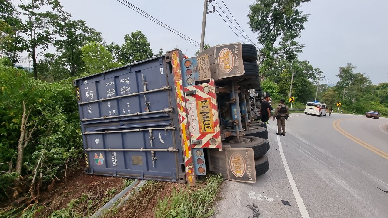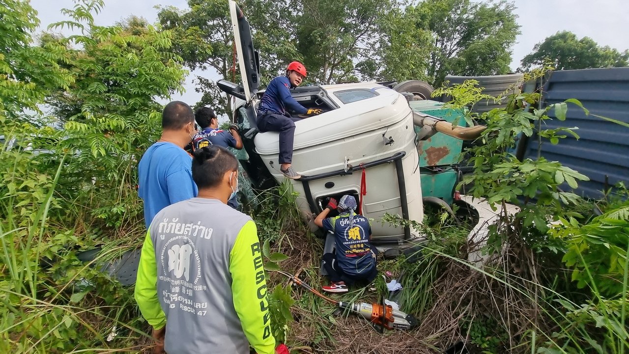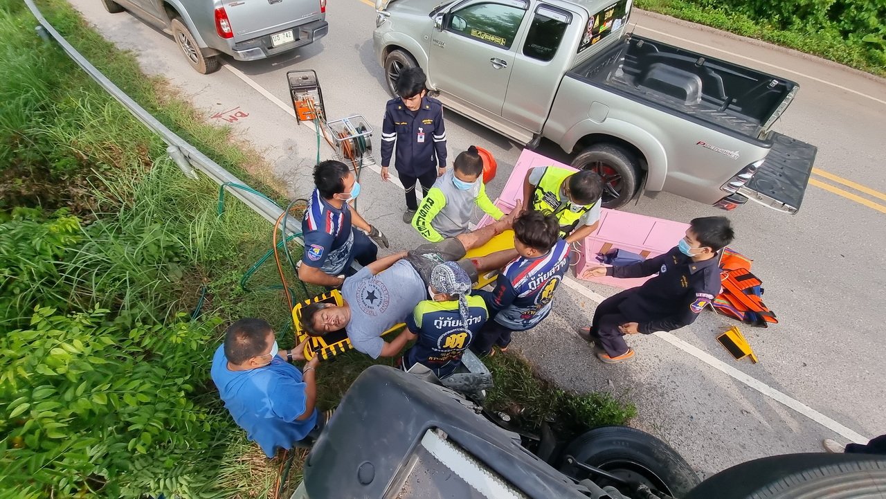 เมื่อเวลา 08.00 น. วันที่ 29 ก.ค.65 สภ.ด่านซ้าย จ.เลย ได้รับแจ้งมีเหตุรถเทรลเลอร์พลิกคว่ำ คนขับถูกอักก๊อปปี้ภายในรถ ถนนเขตรอยต่อ อ.นครไทย จ.พิษณุโลก และ อ.ด่านซ้าย จ.เลย เมื่อรับแจ้งประสานไป สภ.นครไทย กู้ภัยสัจจะไมตรี กู้ภัยสว่างคีรีธรรม จุดด่านซ้าย มูลนิธิมิตรภาพมงคลธรรม พร้อมอุปกรณ์เครื่องตัดถ่าง เดินทางไปที่เกิดเหตุ พบรถเทรลเลอร์สแกนดิเนเวีย สีขาว ทะเบียนตัวแม่ 64-7164 กรุงเทพมหานคร ทะเบียนลูกพ่วง 63-6359 กรุงเทพมหานคร สภาพพลิกคว่ำตะแครงซ้าย พบคนขับถูกอัดก๊อปปี้ภายในรถ ชื่อนายธีรเดช ชั่งน้ำ อายุ 42 ปี อยู่ ต.คลองประเวศ อ.บ้านโพธิ์ จ.ฉะเชิงเทรา กู้ภัยฯ ใช้เครื่องตัดถ่างงัดซากประตูร่วม 1 ช.ม. จนสามารถนำตัวออกมาจากรถสภาพบาดเจ็บ นำส่ง รพร.ด่านซ้าย