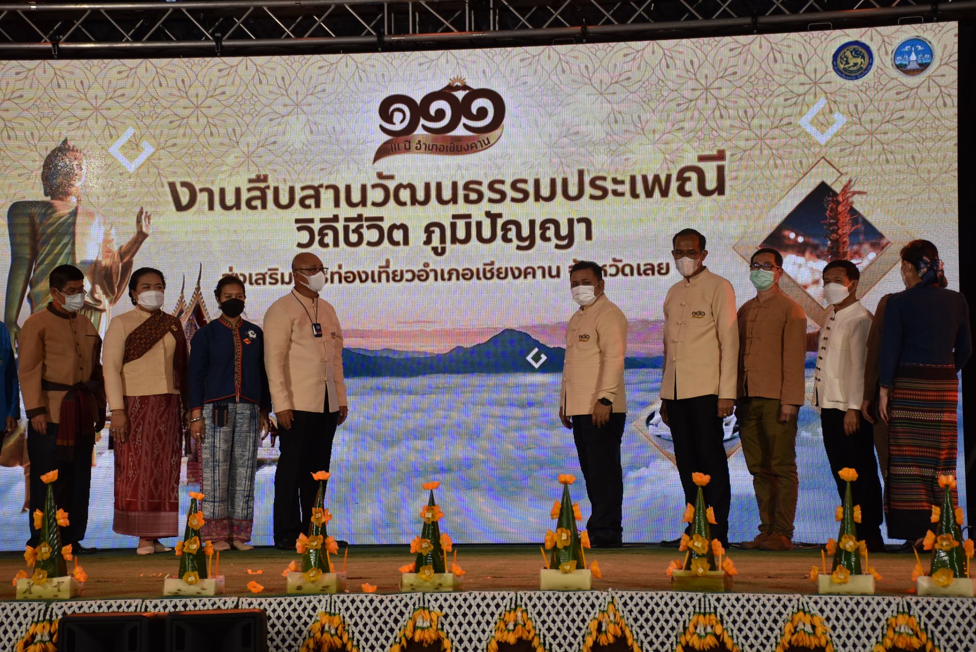 เวลา 18.00 น. วันที่ 13 ส.ค.65 ณ ลานวัฒนธรรมวัดท่าคก อำเภอเชียงคาน จังหวัดเลย นายชัยธวัช เนียมศิริ ผู้ว่าราชการจังหวัดเลย เป็นประธานเปิดงานสืบสานวัฒนธรรมประเพณี วิถีชีวิต ภูมิปัญญา ส่งเสริมการท่องเที่ยวอำเภอเชียงคาน จังหวัดเลย (111 ปี) มีนายณรงค์ จีนอ่ำ รองผู้ว่าราชการจังหวัดเลย นายจริยาทร สูหู่ ผอ.ททท.สำนักงานเลย พร้อมหัวหน้าส่วนราชการ รัฐวิสาหกิจ ภาคเอกชน ประชาชน นักท่องเที่ยวร่วมในพิธีฯ จำนวนมาก