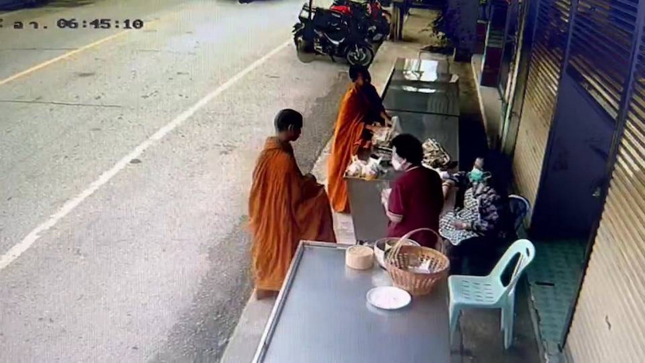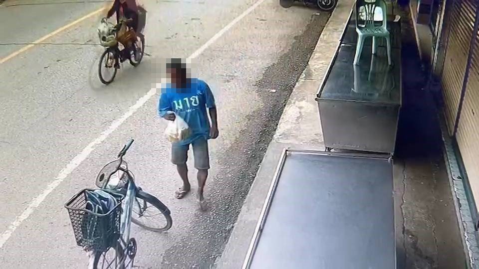 ผู้สื่อข่าวลงพื้นที่ไปยังร้านขวัญใจ พบนายสิปปภาส จันทรภาภรณ์ ลูกชายเจ้าของร้าน เล่าว่า วันดังกล่าวแม่ตื่นขึ้นมาใส่บาตรเป็นประจำทุกวัน วันนี้ก่อน 7 โมงเช้า มีเณรวัดศรีวิชัยวนาราม (วัดหนองแวง) ออกมาบิณฑบาต และแวะมาที่หน้าร้าน แม่ได้ตักบาตรแต่ด้วยในบาตรมีอาหารเยอะ เณรจึงขอฝากไว้ก่อน หลังบิณฑบาตเสร็จขากลับจะแวะมารับ ซึ้งก่อนหน้านั้นชายในคลิปที่ใส่เสื้อเสื้อฟ้าปั่นจักรยานมาที่ร้าน คุณแม่ก็ให้ขนมไปแล้วแต่ก็ยังไม่ไป จนกระทั่งเณรบิณฑบาตกลับมาพบว่าอาหารหายไป ซึ้งปกติจะไม่หาย จึงเปิดกล้องวงจรปิดดู พบว่าชายเสื้อสีฟ้าเป็นคนหยิบเอาไปไว้ในตะกร้าหน้ารถจักรยาน จากนั้นรีบปั่นหนีไป มาทราบว่าชายดังกล่าวไม่ค่อยเต็ม มีขอนร้านค้าแถวนี้บ่อย ไม่รู้จักชื่อและบ้านอยู่ไหน แต่คิดว่าน่าจะมีบ้านอยู่ไม่ไกลแถวนี้