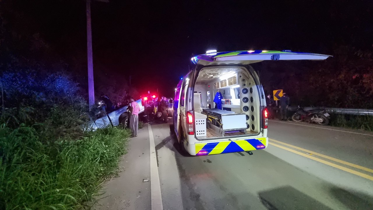 เมื่อเวลา 18.10 น. วันที่ 27 ต.ค.65 ตร.สภ.ด่านซ้าย จ.เลย แพทย์ รพร.ด่านซ้าย กู้ภัยสัจจะไมตรี กู้ภัยสว่างคีรีธรรม จุดด่านซ้าย พร้อมเครื่องตัดถ่างเดินทางไปที่เกิดเหตุ รถกระบะพุ่งชนเสาไฟฟ้าคนขับถูกอัดก๊อปปี้เสียชีวิต ที่ถนนสายด่านซ้าย-ปากหมัน ก่อนถึงบ้านนาข่า ต.ปากหมัน อ.ด่านซ้าย ที่เกิดเหตุ พบรถ จยย.ฮอนด้า รุ่นซูโม่ สีเขียว ทะเบียน 1 กข 3684 เลย ถูกรถกระบะอีซูซุแค็ป สีบรอนด์เงิน ทะเบียน บต 8689 เลย ชนคนขี่และคนซ้อนได้รับบาดเจ็บเล็กน้อย ส่วนรถกระบะเสียหลักพุ่งชนเสาไฟฟ้าริมทาง สภาพหน้ารถพังยับเยิน คนขับชื่อนายวีรวัฒน์ ขุนทอง อายุ 27 ปี อยู่ ต.คลองยาง อ.เกาะลันตา จ.กระบี่ ถูกอัดก๊อปปี้เสียชีวิตในรถ กู้ภัยฯ ใช้เครื่องตัดถ่างงัดประตูนาน 20 นาที จนสามารถนำร่างออกมาได้ ส่งชันสูตรพลิกศพที่ รพร.ด่านซ้าย