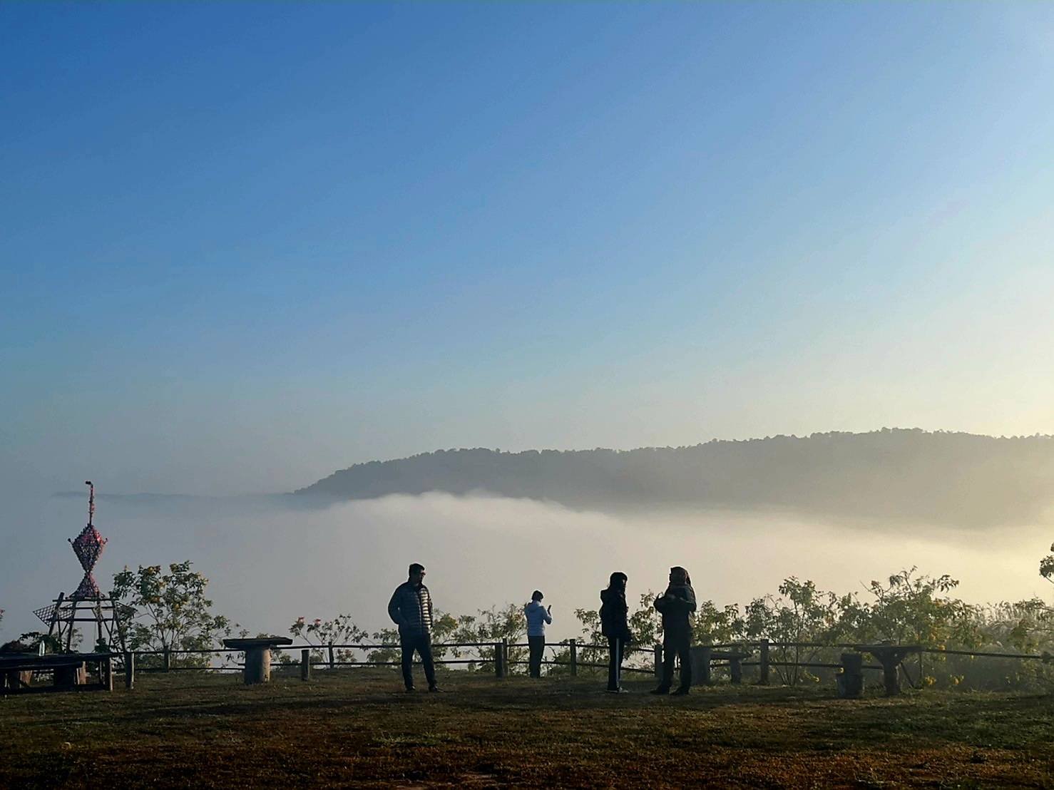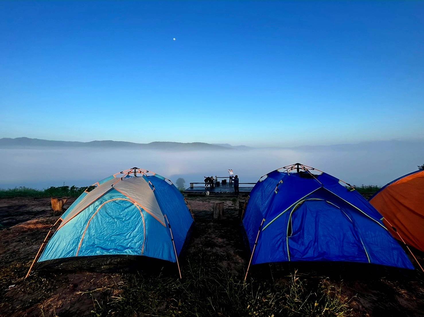 ที่ลานกางเต็นท์ภูทอก บ้านลาด ต.นาพึง อ.นาแห้ว จ.เลย นักท่องเที่ยวกางเต็นท์พักแรม สัมผัสอากาศหนาวเย็นสบายๆ อุณหภูมิประมาณ 17-19 องศา ชมทะเลหมอก ดวงอาทิตย์โผล่พ้นแนวเขาในยามเช้าตรู่ สร้างความประทับใจกับนักท่องเที่ยว