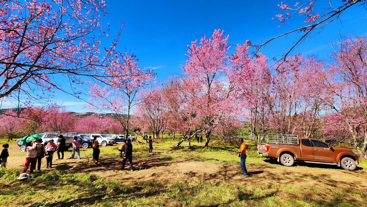 วันที่ 15 ม.ค.66 ที่บ้านตูบค้อ ต.กกสะทอน อ.ด่านซ้าย จ.เลย นักท่องเที่ยวนับ 1,000 คน ขึ้นภูลมโล อุทยานแห่งชาติภูหินร่องกล้า สัมผัสอากาศเย็น ชมดอกดอกพญาเสือโคร่ง หรือดอกซากกุระเมืองไทย ที่เบ่งบานสะพรั่งออกดอกสีชมพู รอรับนักท่องเที่ยวมาสัมผัสความสวยงาม ที่มีให้ดูปีละครั้ง บนพื้นที่กว่า 1,200 ไร่ นับแสนต้น ซึ้งในวันนี้ดอกดอกพญาเสื้อโคร่งหรือดอกซากุระเมืองไทย ได้เบ่งบานเต็มที่แล้ว คาดว่าปลายเดือนมกราคม-ต้นเดือนกุมภาพันธ์ ดอกก็จะร่วงโรย นักท่องเที่ยวที่พลาดชมต้องรอไปถึงปีหน้า