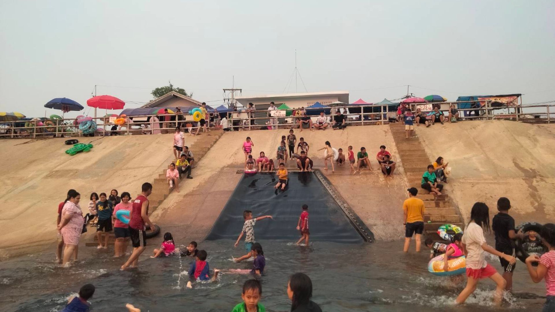 วันที่ 6 เมษายน 66 จังหวัดเลย อากาศร้อนจัด ชาวบ้านหนีร้อนจูงมือลูกหลานไปเล่นน้ำฝายห้วยโตก ต.นาโป่ง อ.เมืองเลย จ.เลย ที่อยู่ไม่ไกลจากตัวเมืองเลย ไปมาสะดวก ตลอดทั้งวันมีพ่อแม่พาลูกหลานมาเล่นน้ำ เพื่อคลายร้อนอย่างสนุกสนาน ตั้งวงกินข้าวด้วยกัน และดูพระอาทิตย์ลับขอบฟ้าในช่วงเย็น ส่วนร้านอาหาร เครื่องดื่ม ขายดิบขายดี