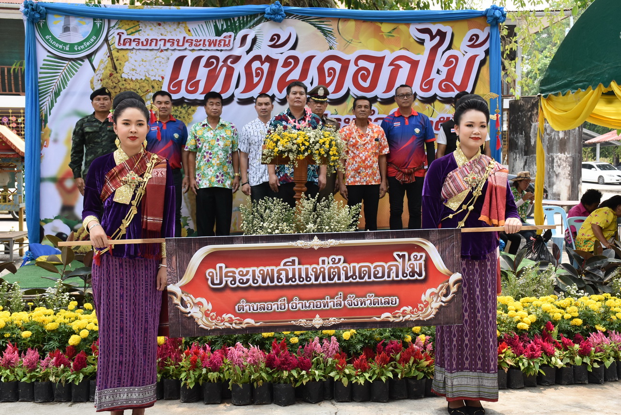 งานประเพณีแห่ต้นดอกไม้ของ ต.อาฮี และ ต.น้ำทูน อ.ท่าลี่ จ.เลย มีมาตั้งแต่โบราณกาล มีการอนุรักษ์สิบสานโดยพี่น้องทั้งสองตำบลดังกล่าว รุ่นต่อรุ่นมาจนถึงปัจจุบัน กล่าวคือ เมื่อถึงวันสิ้นศักราชหรือวันสังขารล่วงวันที่ 16 เมษายนของทุกๆ ปี จะพร้อมใจกันทำต้นดอกไม้หลากสี พ่อกองทราย ตอนบ่ายก็แห่ต้นดอกไม้และจตุปัจจัยไปพร้อมกันที่วัดทำพิธีขอขมาคารวะต่อพระรัตนตรัยซึ่งเป็นประเพณีที่ทำมานานจนถึงปัจจุบัน เพื่อสืบสานประเพณีของท้องถิ่นให้คงอยู่สืบต่อไป ปลูกจิตสำนักให้แก่เยาวชนและประชาชนให้เข้าถึง ประเพณีแห่ต้นดอกไม้ ส่งเสริมประเพณีท้องถิ่นให้เป็นที่รู้จักของนักท่องเที่ยวทั้งชาวไทยและชาวต่างชาติ ส่งเสริมให้ประชาชนในท้องถิ่นมีรายได้จากประเพณีที่สำคัญของท้องถิ่น เพื่อ สร้างความสามัคคีและเกิดความสมานฉันท์ขึ้นในพื้นที่