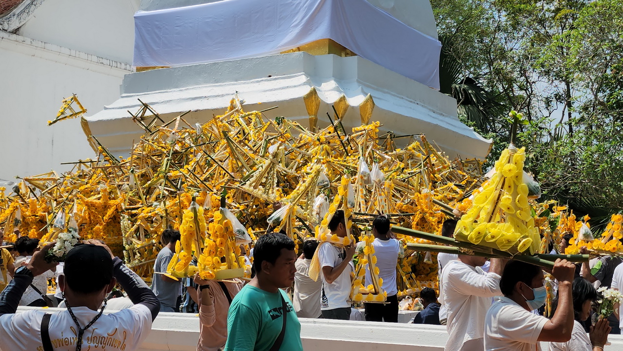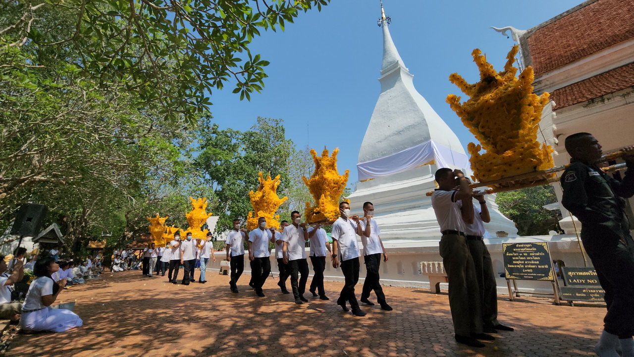 เมื่อเวลา 09.30 น. วันที่ 4 พฤษภาคม 66 ที่พระธาตุศรีสองรัก อ.ด่านซ้าย จ.เลย ดร.ถาวร เชื้อบุญมี เจ้าพ่อกวน ผู้นำจิตวิญญาณ เจ้าแม่นางเทียม คณะพ่อแสน นางแต่ง พร้อมด้วยประชาชน นักท่องเที่ยวนับหมื่นคน จากทั่วสารทิศของจังหวัดเลย และจังหวัดใกล้เคียง ร่วมทำบุญแห่ถวายขบวนต้นผึ้ง ประเพณีเก่าแก่ที่สืบทอดกันมายาวนานกว่า 463 ปี