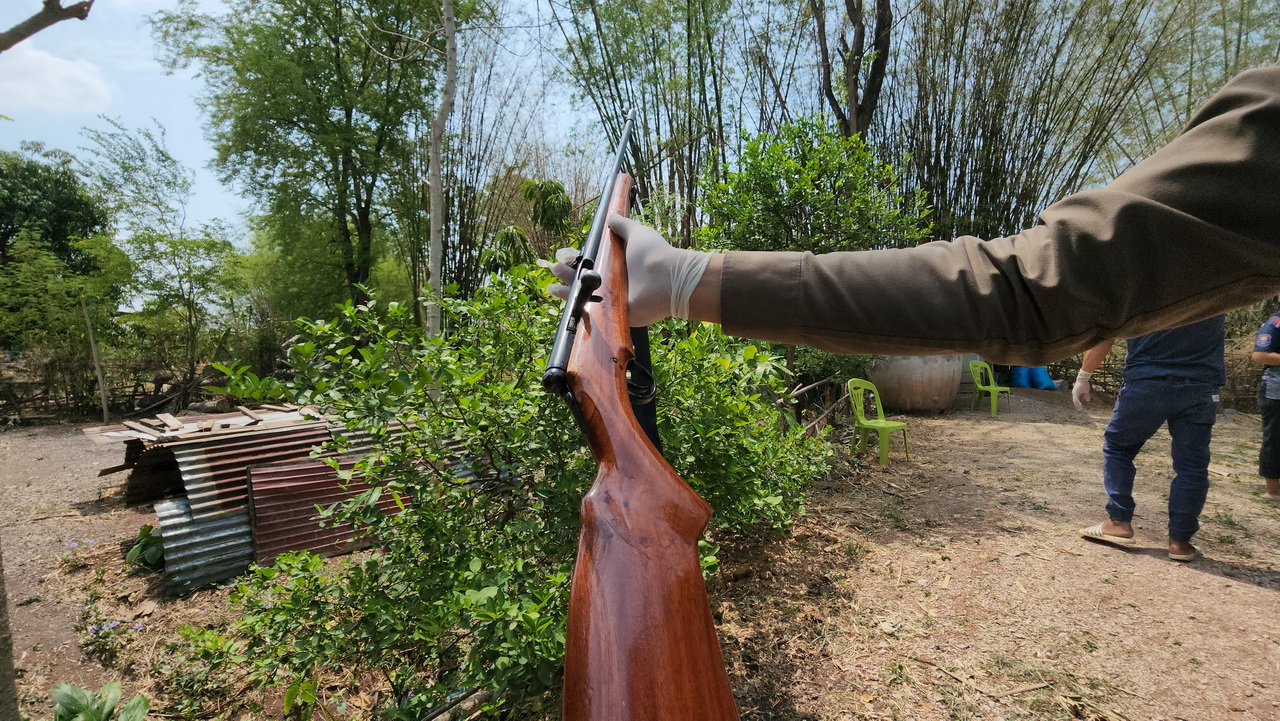 เมื่อเวลา 08.00 น. วันที่ 9 พฤษภาคม 66 พ.ต.อ.เทอดศักดิ์ บุญโชติ ผกก. สภ.หนองหญ้าปล้อง พ.ต.ท.ปรีชา ผุยแสงพันธ์ รอง ผกก.(สอบสวน) พ.ต.ท.รณกฤต ฤทธิ์ศักดิ์ สว. (สอบสวน) จนท.พฐ.ภ.จว.เลย แพทย์ รพ.วังสะพุง กู้ภัยสว่างคีรีธรรม จุดโคกขมิ้น จุดวังสะพุง เดินทางไปที่เกิดเหตุ บ้านปูนชั้นเดียว ภายในหมู่บ้านสุขนิกร ต.โคกขมิ้น อ.วังสะพุง พบผู้เสียชีวิตนางพยอม อายุ 57 ปี สภาพนอนคว่ำหน้าอยู่ข้างบ้าน ถูกยิงด้วยอาวุธปืนยาว ขนาด .22 เข้าที่ขมับซ้ายทะลุแก้มขวา 1 นัด และภายในบ้านพบผู้เสียชีวิตชื่อนายบุญเพิ่ม อายุ 64 ปี สามีนางพะยอม เสียชีวิตสภาพนอนหงาย มือซ้ายจับกระบอกปืน ขนาด.22 มีบาดแผลถูกยิงเข้าที่ปากทะลุขมับขวา 1 นัด ที่เกิดเหตุไม่พบร่องรอยการต่อสู้ เสียชีวิตมาแล้ว 14 ชม. กู้ภัยฯ นำร่างส่งชันสูตรพลิกศพที่ รพ.วังสะพุง
