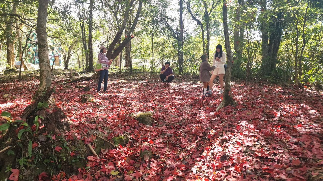 วันที่ 2 มกราคม 67 ที่ภูหลวงโคกนกกะบา เขตรักษาพันธุ์สัตว์ป่าภูหลวง อ.ภูเรือ จ.เลย นักท่องเที่ยวจำนวนมาก แห่ชมใบเมเปิ้ลหรือก่วมแดง ที่ผลิใบจากสีเขียวเป็นสีแดงสดใสร่วงจากกิ่งลงสู่พื้นดิน และลำห้วยจนเป็นพื้นสีแดง นักท่องเที่ยวถ่ายรูปเป็นที่ระลึก ทุกปีช่วงที่มีอากาศหนาว ปลายเดือนธันวาคม-มกราคม ของทุกปี ใบเมเปิ้ลจะผลิใบจากสีเขียวเป็นสีแดง ให้นักท่องเที่ยวมาสัมผัสชมความสวยงามอยู่ประมาณ 1-2 อาทิตย์ จากนั้นใบก็ร่วงจากต้น ซึ้ง 1 ปี มี 1 ครั้ง พลาดไม่ได้ไม่อย่างงั้นต้องไปดูปีหน้า และอาจโชคดีเจอช้างป่าภูหลวง ที่ลงมาหาอาหารและเดินเล่นที่ถนนทางขึ้นหลวงโคกนกกะบา เพื่อให้นักท่องเที่ยวชม แต่ก็ไม่ควรเข้าใกล้ โดยเฉพาะขับขี่รถเมื่อเห็นช้างไม่ควรบีบแตร และให้ปฎิบัติกฎข้อระเบียบของเขตรักษาพันธุ์สัตว์ป่าภูหลวงด้วย
