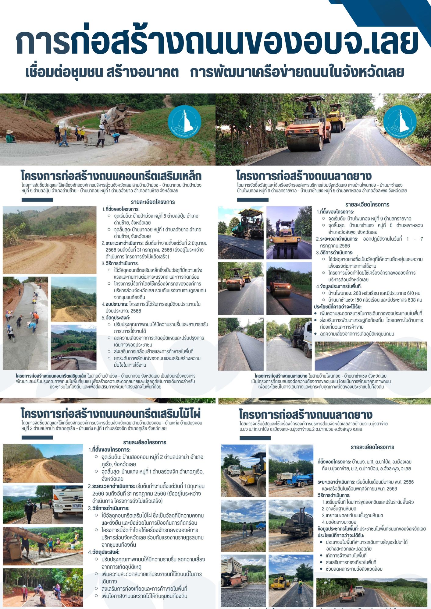 * เพื่อยกระดับมาตรฐานเครือข่ายถนนในจังหวัดเลยให้สอดคล้องกับความต้องการของประชากรและการพัฒนาทางเศรษฐกิจ