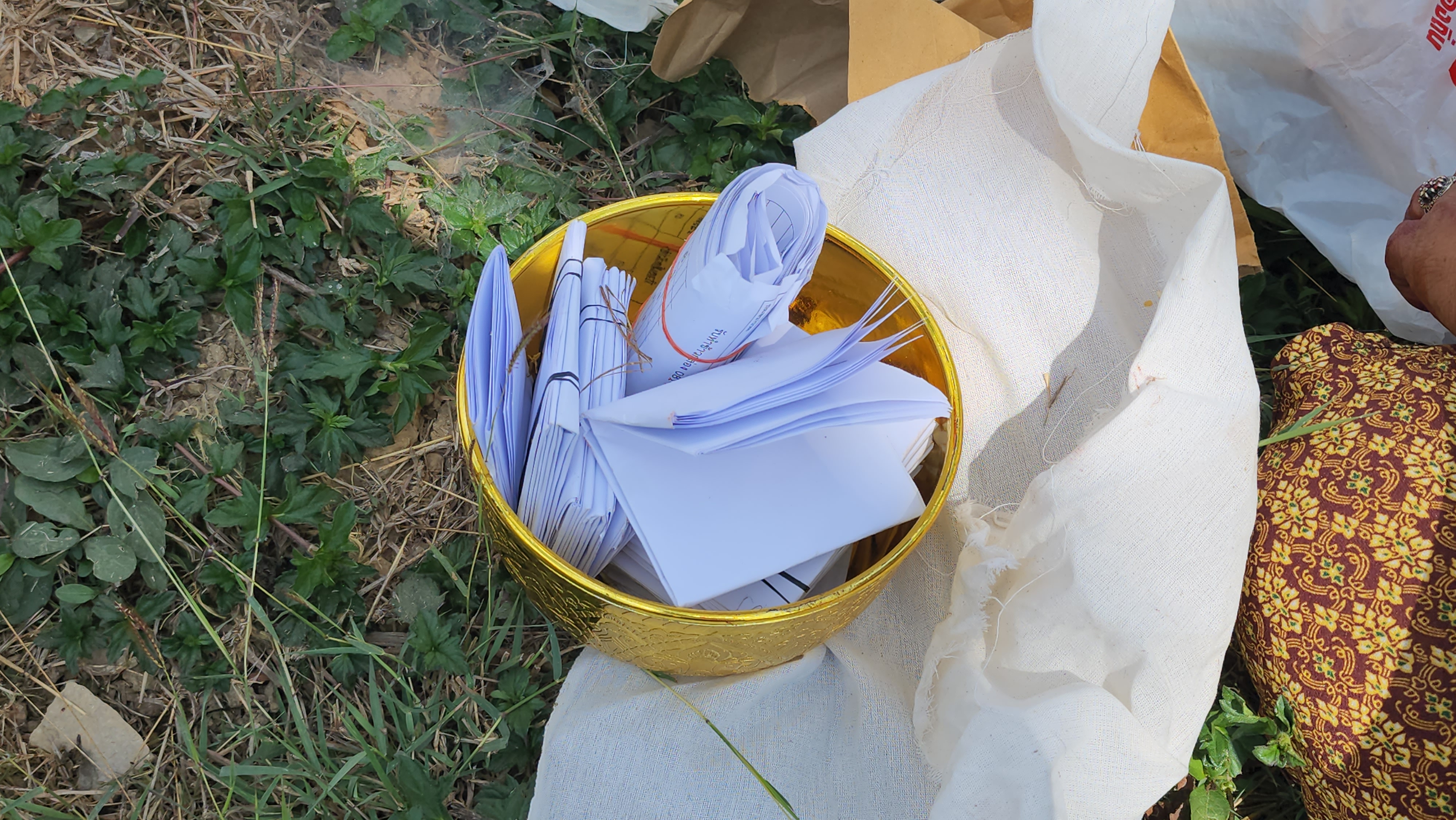 บ่ายโมง วันที่ 16 มกราคม 67 ตร.สภ.เมืองเลย พร้อมชุดสืบสวน เดินทางไปที่เกิดเหตุ หน้าห้างค้าส่ง ถนนเลย-วังสะพุง ต.นาอาน อ.เมืองเลย พบผู้เสียหายช่วยกันจับกุมตัว นายสายยน อายุ 47 ปี อยู่ ต.ศรีสงคราม อ.วังสะพุง จ.เลย สภาพศีรษะแตก เลือดท่วมตัว ที่ปลอมเป็นพระใบ้หวยแล้วเชิดเงิน 130,000 บาท หนี ส่วนคนร้ายอีกคนหนีรอดไปได้ ห่างออกไปพบรถเก๋งโตโยต้าวีออส สีบรอนด์เทา จนท.ตรวจค้นในรถพบซองเปล่าจำนวนมาก จีวรพระ พาน ซองขาว อาวุธปืนสั้นไทยประดิษฐ์ 1 กระบอก กระสุนปืน ขนาด .38 ยาบ้ากว่า 30 เม็ด จึงตรวจยึดของกลาง นำตัวผู้ต้องไปรักษาบาดแผลที่ รพ.เลย